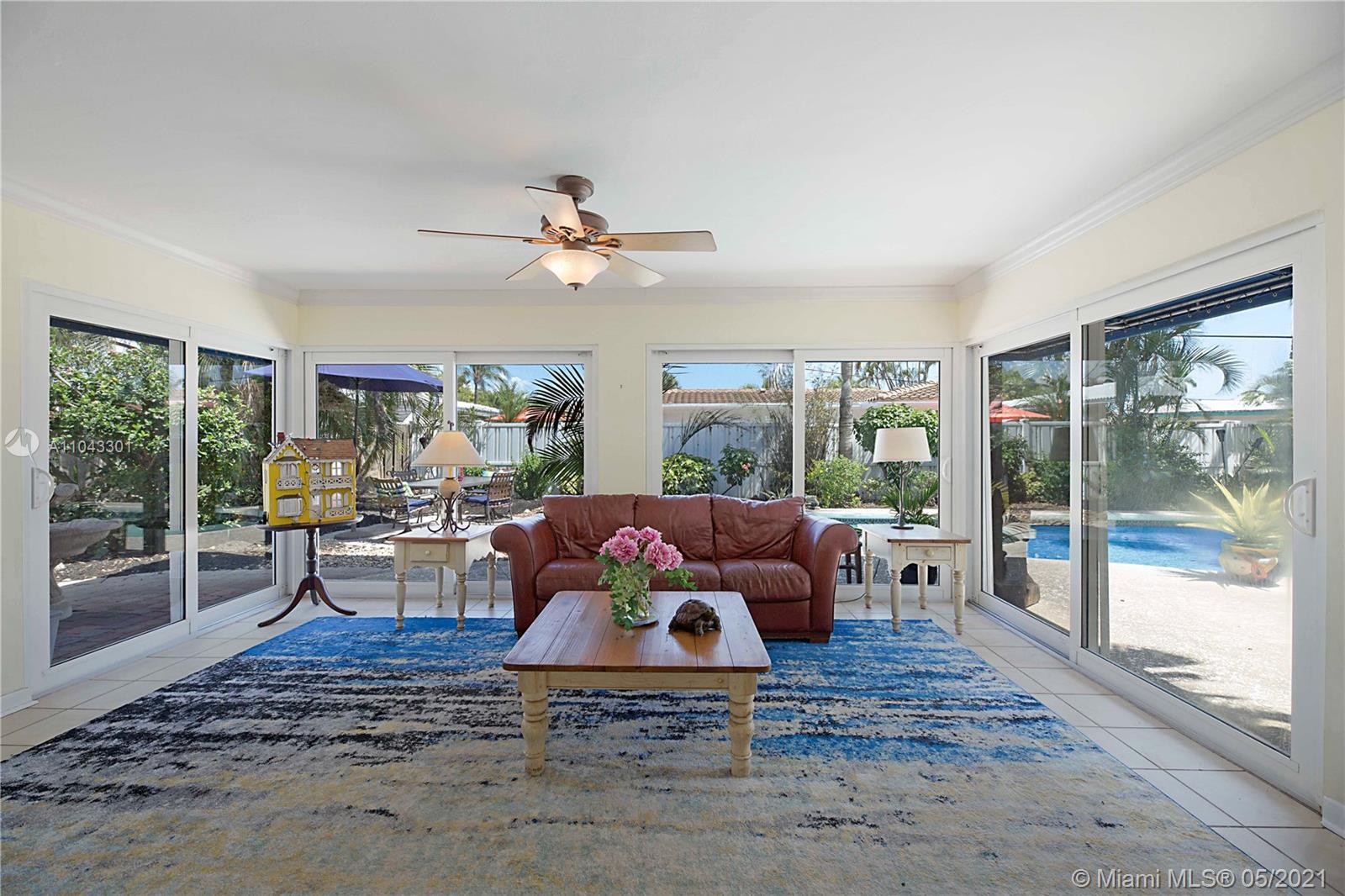 This impeccable 2/2 pool home w/ carport in Imperial Point is situated on a large tropical landscaped lot w/ over 7,000sqft. The half circular paver driveway leads you to the covered carport & front porch. Once you enter through the front doors your immediately greeted by the natural light & captivating views of the pool. This open concept floor plan is perfect for entertaining. The kitchen has been tastefully upgraded w/ real wood cabinetry w/ soft close & pull outs for pantry/spice rack and garbage. Large bedrooms. Updated bathrooms. Master suite features walk-in closet. Plantation Shutters. Impact windows/sliders. Crown molding. New A/C, WH. Interior laundry room w/ storage. Florida room lined w/ sliders lead out to the tranquil pool area w/ outdoor speakers, built-in shed & much more!