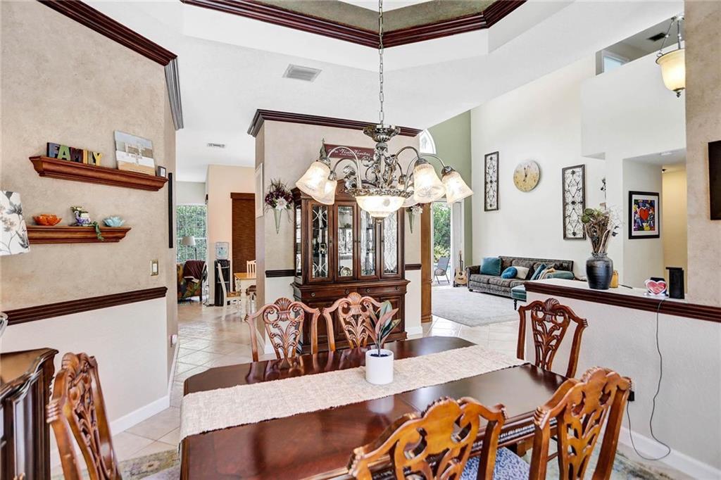 Beautiful two story home in the exclusive, private and gated community of East Landing in Rock Creek. This spacious five bedroom, three and a half bath home sits next to an open lot not zoned for build out, allowing for extra quiet and privacy. Living room boasts volume ceilings and sliders with beautiful views of a lusciously landscaped pool oasis. Oversized 1st floor Master suite with generous his and hers walk in closets and an updated master bathroom suite with dual sinks and a whirlpool tub. New Aquaguard wood grain laminate floors on the stairs and throughout the upper level. Brand new roof, completed February 2021 and two new AC units. Some Impact glass windows on the upper level and hurricane shutters for all.