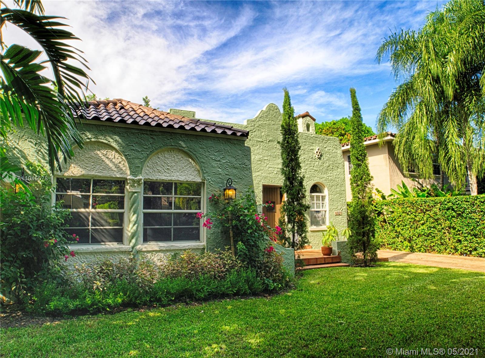 A rare find in prime Gables location walking distance to Merrick Park, Youth Center and Coral Gables library. Upgraded 3/2 with 1 Car Garage with some of the largest bedrooms you can find in an Old Spanish home AND built in theatre. Original Woodfloors, Doors, Baseboards and of course charm. Tons of natural light and nice deck in yard great for relaxing and having your morning coffee. Remodeled kitchen and baths. AC is 1 year old.