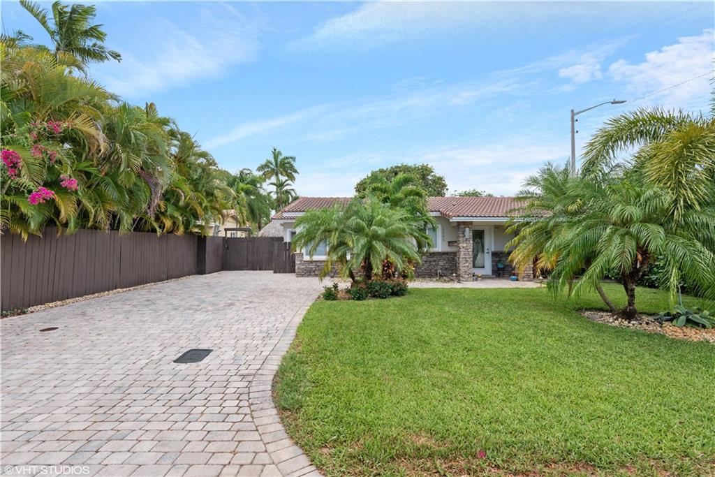 This spacious 4-bedroom/3-bathroom house has an attached 1-bedroom/1-bathroom In-law unit. The main house has a spacious open floor plan where the kitchen with its center island and breakfast bar, dining room and living room blend together into one perfect space with natural light for entertaining and family time. Three of the bedrooms in the main house have its own bathroom and one of them has private entrance from the outside of the house. The fourth is a bonus room, has french doors that open to backyard and can be used as a TV-room, gym or home-office. 500 Sq ft 1-bedroom/1-bathroom In-law unit has pool views and has its own kitchen and living space. Pool is surrounded by a low maintenance beautiful landscape and driveway accommodates parking for up to 5 cars.
