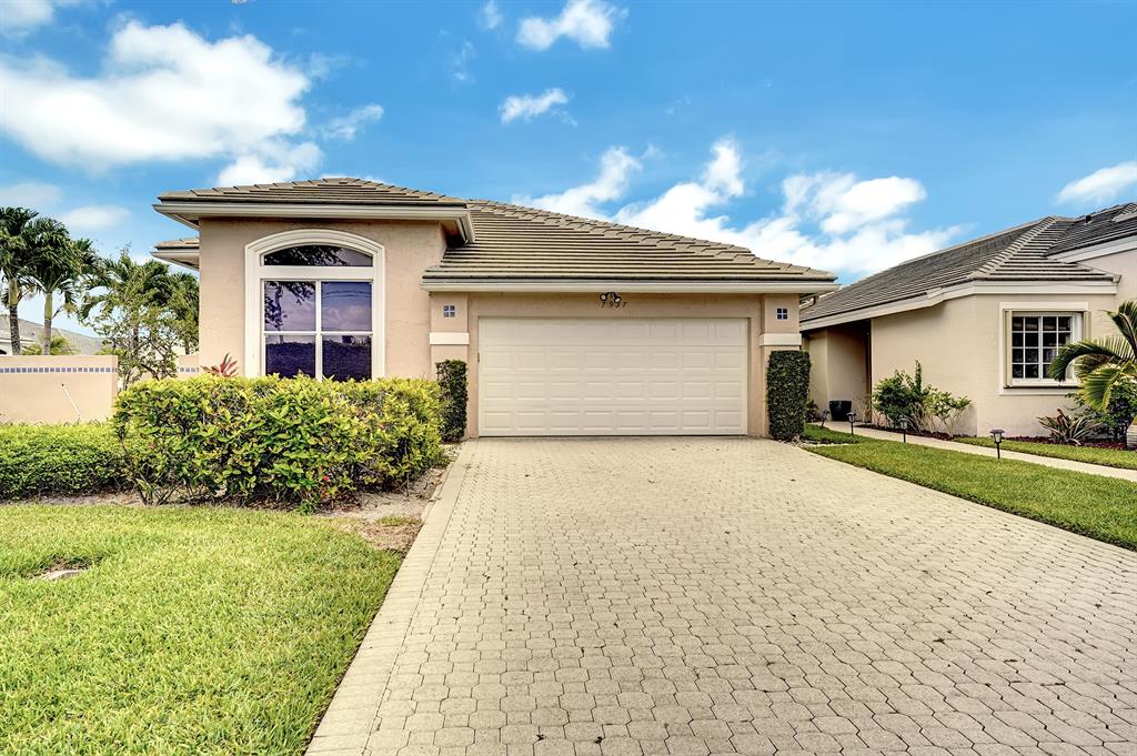 Light, bright and spacious 3/2 in the NON mandatory country club community of The Palms at Boca Pointe. This corner lot home boasts high ceilings throughout with tons of open and bright living space. Expansive master suite with large bathroom and closet. Full 2 car garage. Roof was replaced in 2017. Membership to The Boca Pointe Country Club optional, but not mandatory. Low HOA fees that include 24/7 manned gate, alarm, community pool, garbage & trash removal, pressure cleaning of the roof and driveway, lawn care and painting the exterior of the home.