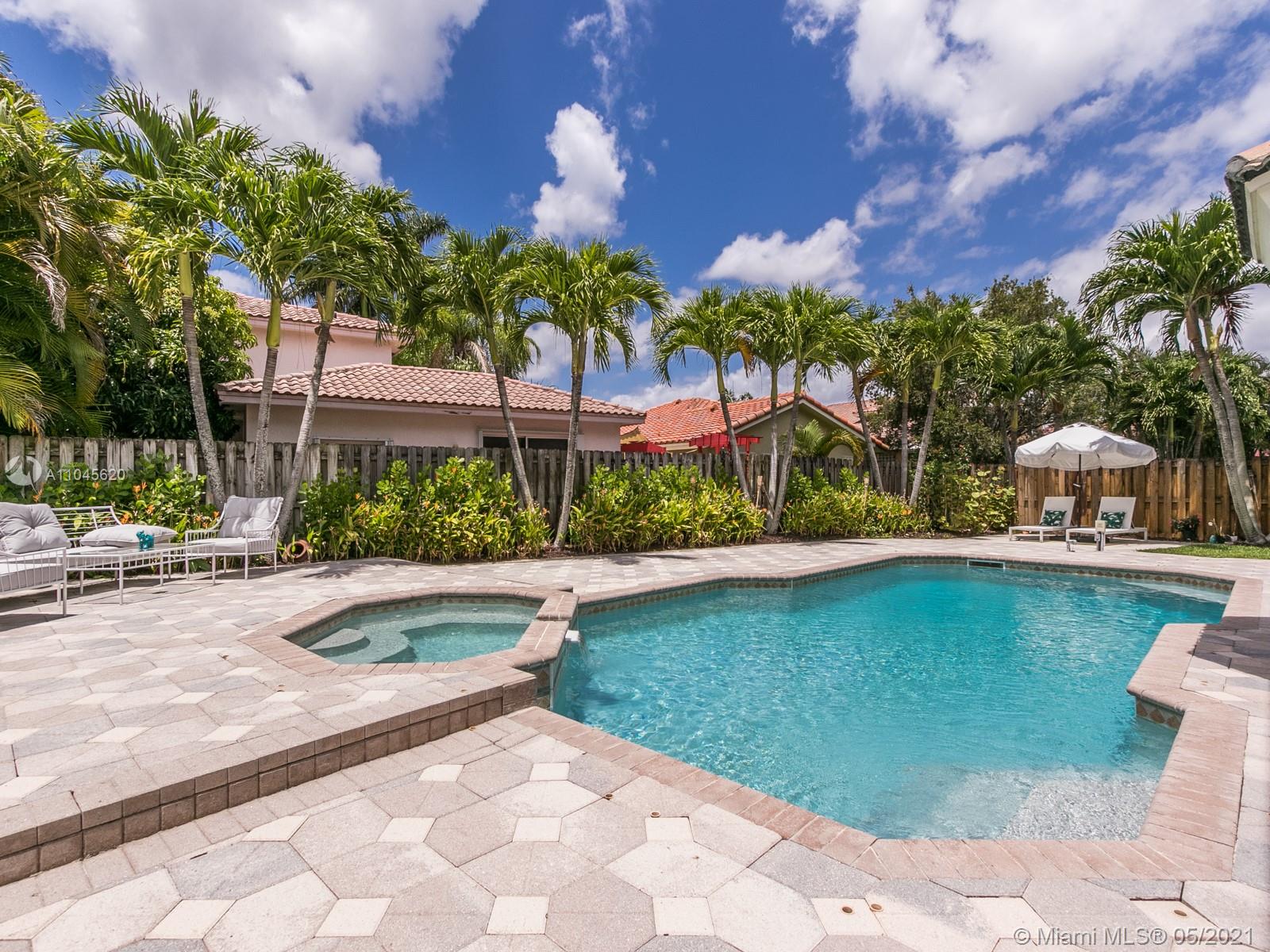Immaculate 4 bed 3 bath, move in ready home located in the quiet upscale gated community of Royal Palm in Shenandoah. The owner spared no expense on upgrades which includes new water resistant laminate flooring throughout the home, remodeled kitchen with beautiful white quartz countertops, new kitchen appliances. Relax outside by resort style pool and hot tub tropical paradise of palm trees with lush Landscspping, enjoy the privacy created by the Clusias planted throughout the backyard. Smart thermostats with blacklight UV filters both AC units. New Custom pool safety fence. 2 car garage with lots of built in storage space. Too much to list, Easy to view, call today!