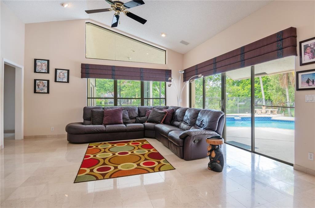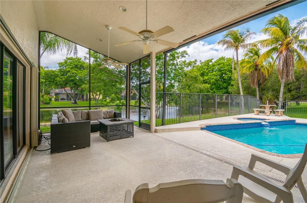 Spacious inviting home in a gated community with beautiful views in Tequesta Lakes that can be seen the minute you walk through the door. This home features an extended covered patio with pool and a custom addition home gym/playroom that is 22 x 18 that overlooks the lake and lit fountain. Situated on a cul-de-sac with a circular driveway, this single story naturally lit open floor plan home has split bedrooms, vaulted ceilings and is perfect for entertaining or just relaxing. Hurricane shutters, pool was redone in 2018, roof 2008