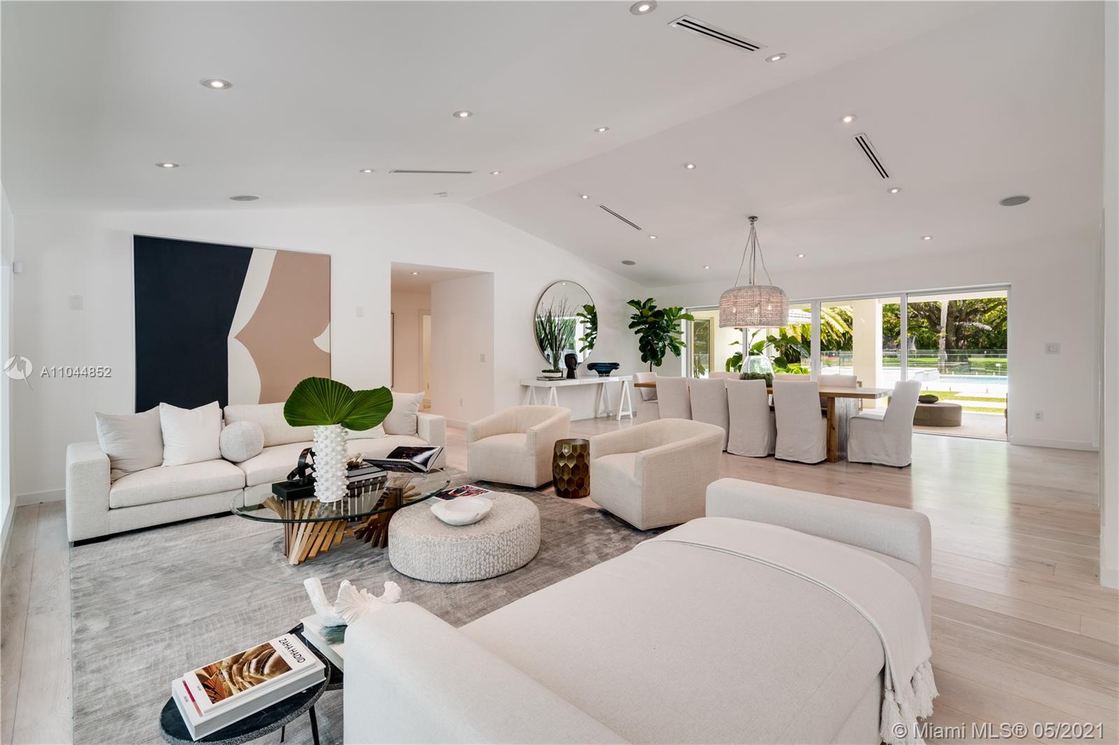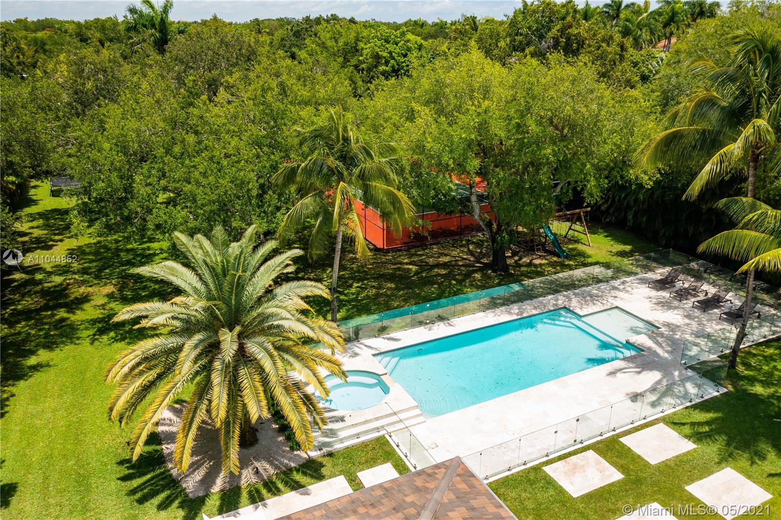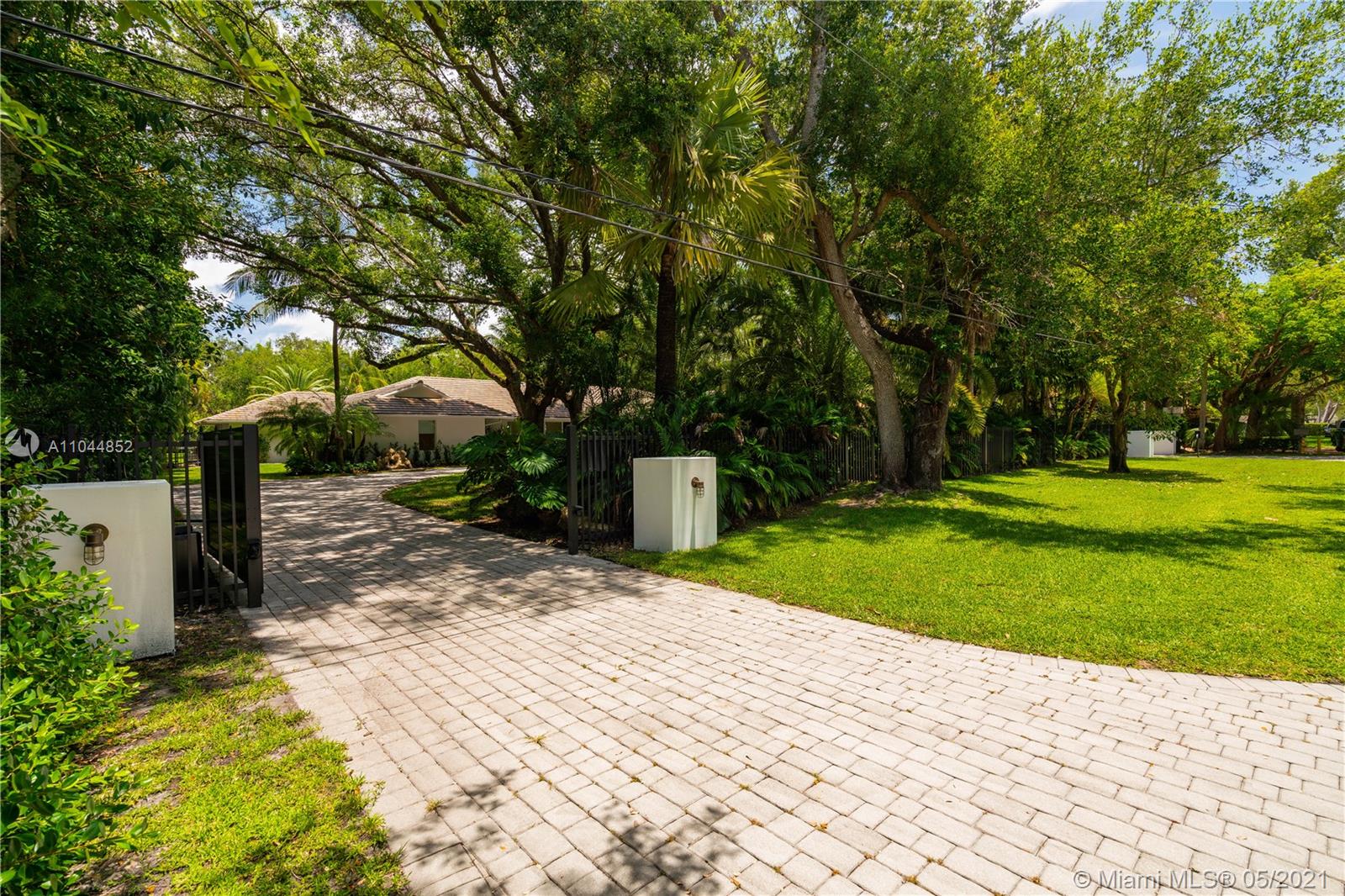 The Hamptons meets Pinecrest and the outcome is FABULOUS. Located on 1 1/4 acres this updated property oozes style and sophistication. It is private, gated, and absolutely sublime. Six bedrooms and a superb floorplan offer everything today’s family could dream of. Panoramic views of the lush, oak-filled gardens overlook an architectural digest pool, tennis court, & magnificent grounds. The white oak floors compliment the crisp, clean design of the kitchen and baths and provide fresh and appealing living spaces. If you love entertaining, the Control 4 system allows music everywhere including the tennis court, the garden, the pool, and the steam shower. The sleek chef’s kitchen with its Wolf and Sub-Zero appliances will become a favorite hang-out spot. Impact glass. A Very Special Home.