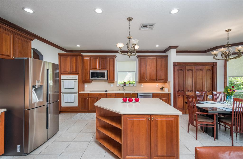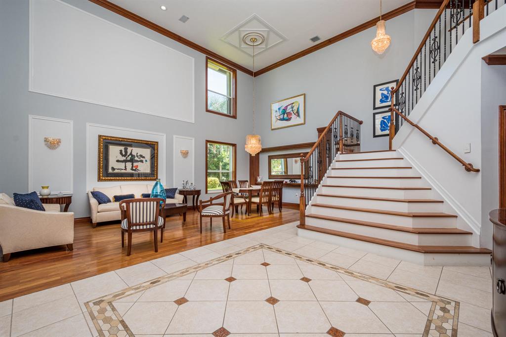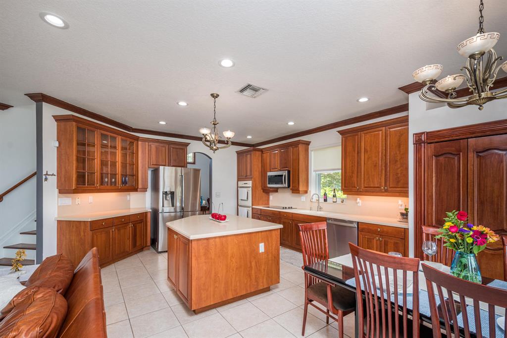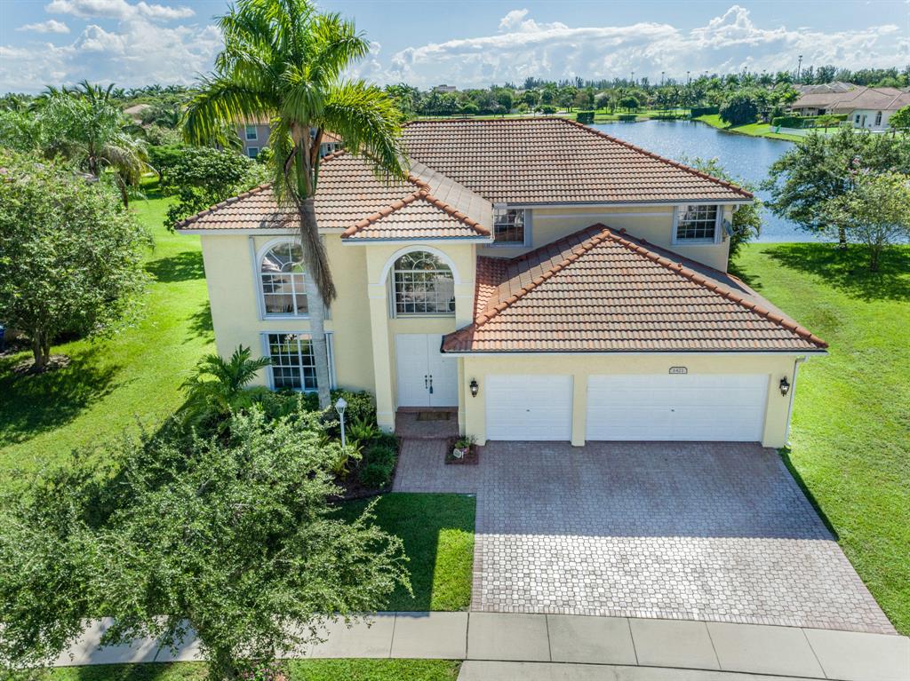 Stunning oversized Kingston Plus model with 4 bedrooms, 3.5 baths, and 3 car garage and lakefront views. This home features stunning volume ceilings as you enter the home. You are greeted by a beautiful formal living and dinning room. The spectacular wood and wrought iron staircase leads to a fabulous upstairs entertainment area. This home features a spacious downstairs master bedroom with an en-suite and a second upstairs Master bedroom with bath. The second floor also has two separate bedrooms with shared bathroom and accessible outdoor balcony from each bedroom. The downstairs also has a kitchen/breakfast & family area with a custom built entertainment center. The Downstairs Master Bedroom includes his and her closets and a very inviting Master bath with separate vanities, soaker t