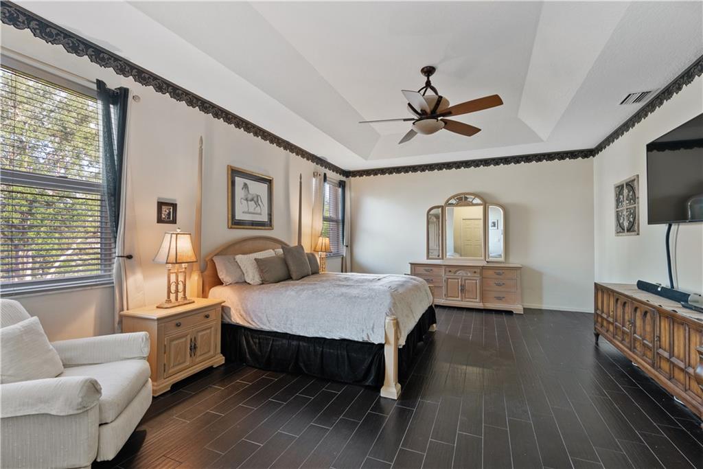 Get ready to entertain! This spacious Park Place two-story cul-de-sac home has upgrades galore! Four bedrooms are upstairs, one bedroom PLUS an office are downstairs. Gourmet remodeled kitchen has expanded island, bar, eat-in area and expansive dining quarters that provide ample seating for guests. Master bedroom suite is HUGE with massive walk-in double closet w/window, large vanity and sitting area space. Master bath has oversized soaking tub and dual-entry shower with stunning stone accents and granite counters. Other bathrooms have been remodeled as well. Paver patio has extra space for multiple seating groups. Pool is newly resurfaced and tiled (April 2021). Air conditioners, hot water heater and appliances are all newer. Community is small, private and gated This beauty won't last!