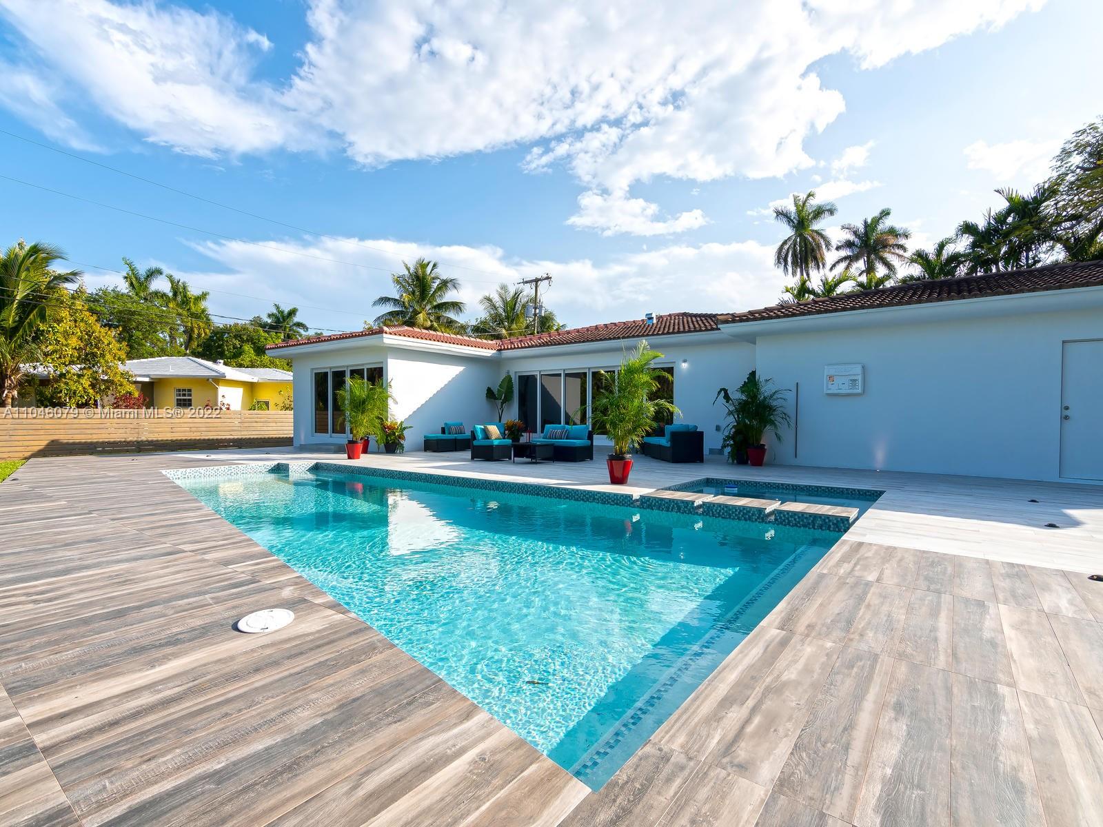 Stunning, totally remodeled and enlarged home with an additional master bedroom and bathroom suite.The property(2.689 sqft.) consist of 3 large bedrooms, 3 full bathroom and 1 powder room. Sits on a beautifully landscaped double lot, located on a semi-private street.Modern bright eat-in kitchen with natural grey quartz countertops, island cooktop with range hood, additional pantry behind the kitchen for added storage space and separate laundry room. All stainless steel BOSCH appliances. New and spacious master with walk-in closet and built-in cabinetry. Master bathroom has wall to wall Italian designer tiles, white quartz countertops, rain shower and soaking bathtub. Open floor plan with Italian tiles throughout. Extra large pool with Jacuzzi. Double cars garage with automatic opener.