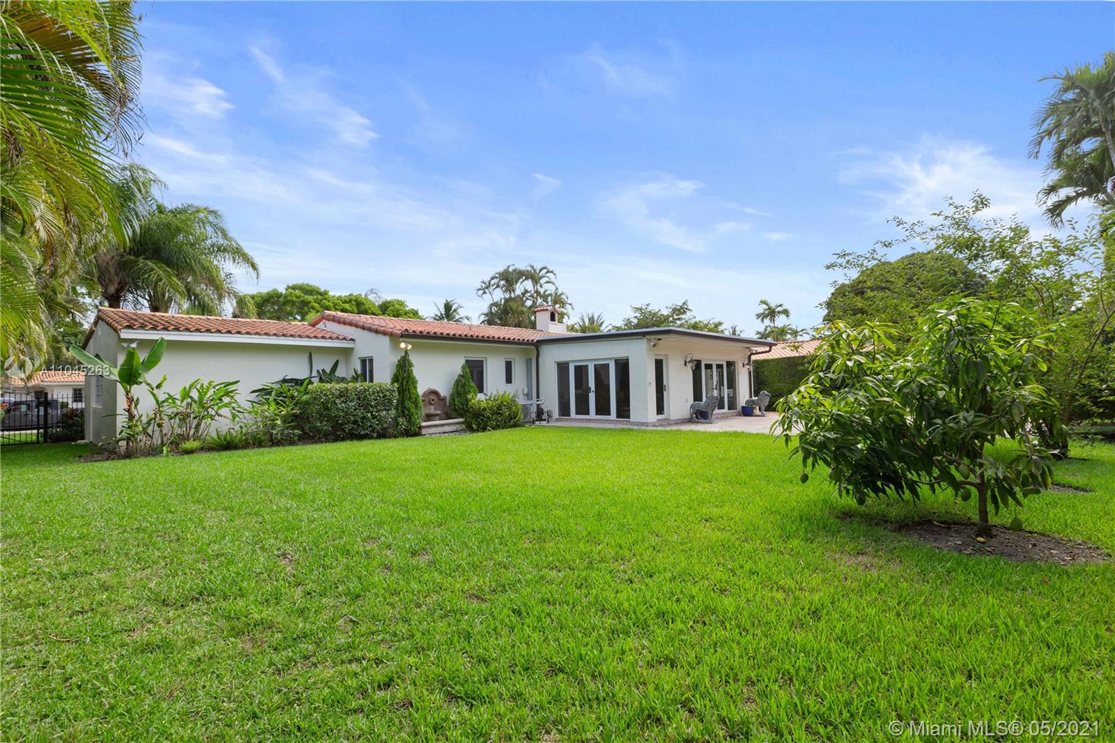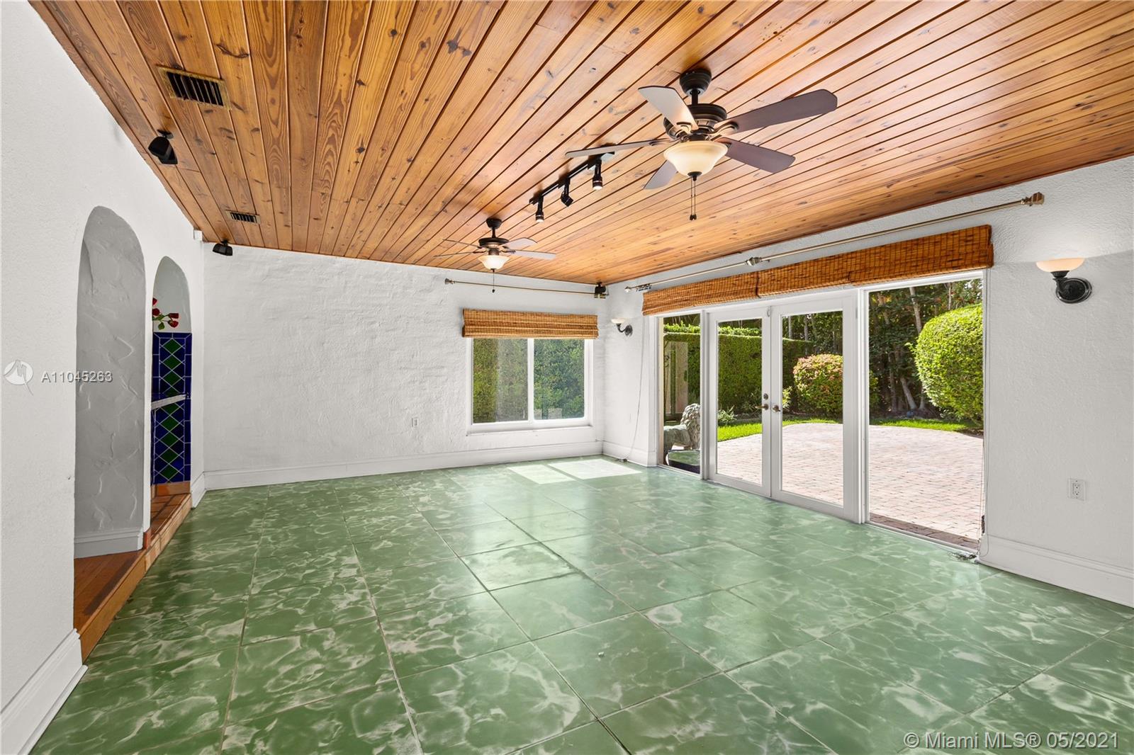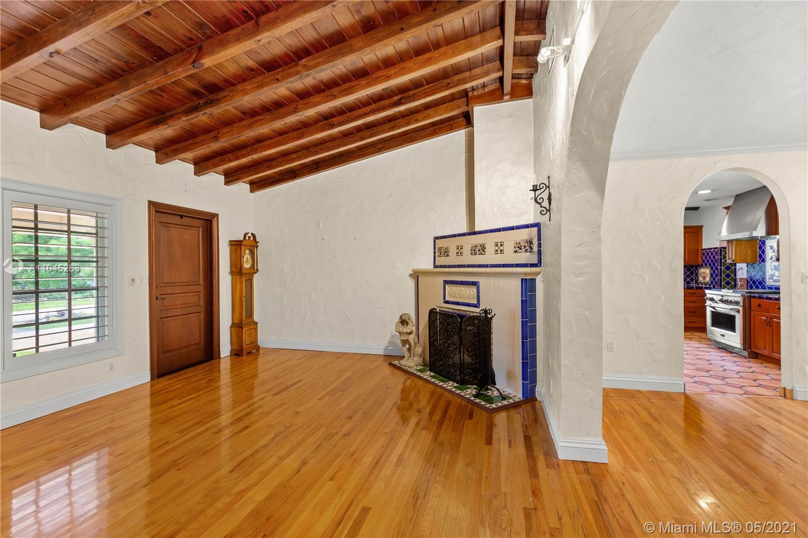 Beautiful and spacious Old Spanish Style 3-bedroom,2-bath home in Coral Gables. Amazing 12,500 SqFt lot, offers plenty of room for a pool and/or expanding. Cuban Uriel, and wood floors. Working fireplace, large family room, spacious kitchen with butchers pantry. Two car garage, impact windows and doors, backup generator and plenty of natural light. Has a beautiful view of the yard and the fruit trees hanging out in the large family room