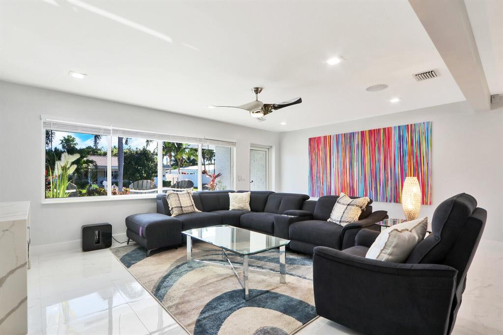 Beautifully renovated 3BR 2BA 2 car garage pool home in highly sought-after Palm Beach Shores, FL. Renovation was completed late 2020 and includes new impact windows throughout, new roof, new circular paver driveway, epoxy coated garage floor, new A/C, all new Samsung Smart appliances which include ''steam ''oven and induction cooktop, quartzite kitchen countertops, luxurious Cristallo quartzite kitchen island w/custom lighting and wine cooler, in-ceiling sound system, high hat lighting throughout all main living areas, ''liquid nickel'' ceiling fans, guest bathroom w/double sinks, master bedroom suite with French doors leading to private fenced backyard, wall mounted Smart TV's in all rooms,