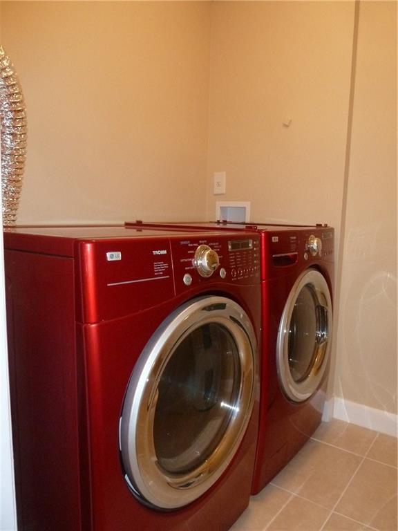Living is easy in this little gem, tucked away in a small development in a fantastic location. Split floor plan has vaulted ceilings with 16" tile throughout. Kitchen has real wood off-white cabinetry with soft close mechanisms, granite countertops, tiled backsplash and stainless appliance package. Nice size master suite has tiled shower with glass enclosure and walk-in closet. Matching mocha vanities with new sink tops and toilets in both baths. Knock-down textured ceilings, new paint, baseboards, interior doors and all new hardware. Laundry room is fitted with LG front load washer/dryer. Patio area is fully fenced in and there is a community pool too. Property has two deeded parking spaces and the monthly maintenance is very reasonable. A/C & electrical panel just replaced.