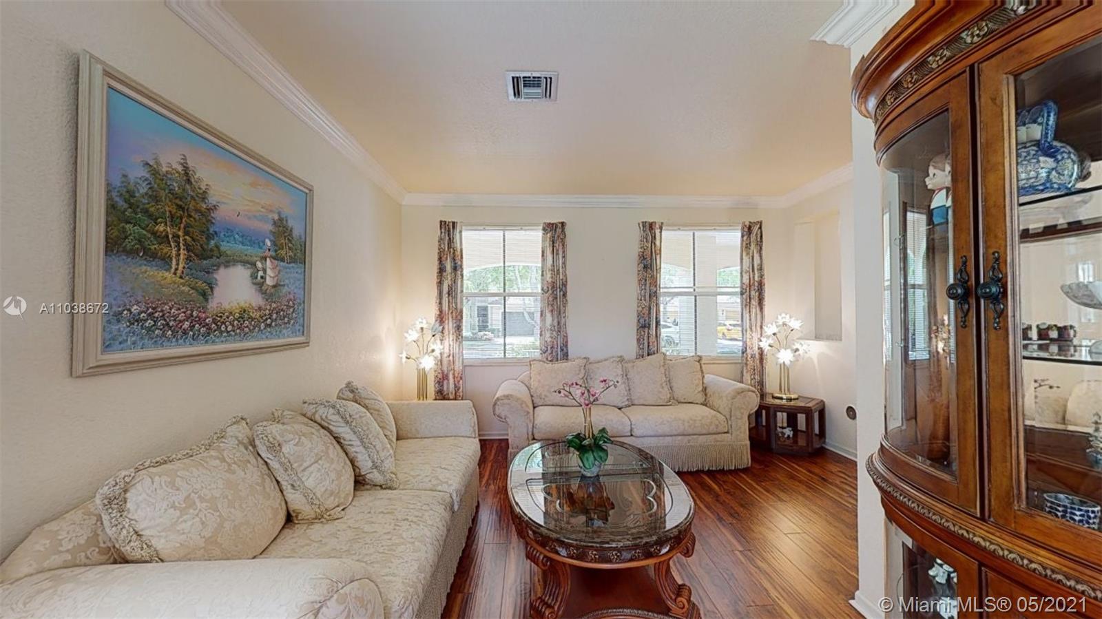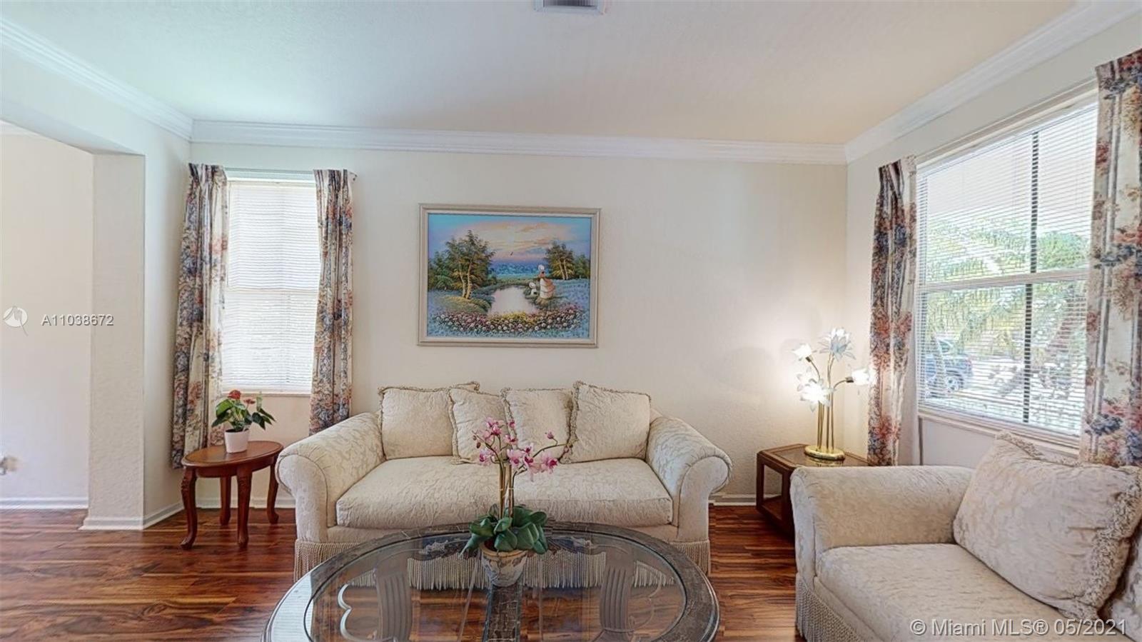 Elegant 5 bedroom Estate home located in the gorgeous community of Savanna!! This home has been meticulously maintained by its original owners. Unique Fuchsia model which offers a guest bedroom and full bathroom in a separate hallway upstairs for privacy. Upstairs impact windows in some rooms. Crown molding and neutral tiles downstairs, premium laminated flooring on stairs, upstairs, and formal living/dining area. Immaculate kitchen with 42" rich cherry wood cabinets/ over-counter range and double oven. Covered porch at entry level and backyard. Oversized lot- great for swimming pool and entertainment. The community of Savanna is truly a resort-style community with an incredible clubhouse, swimming pools, a waterslide, playgrounds, tot lot, basketball, Tennis Courts, and mini golf.
