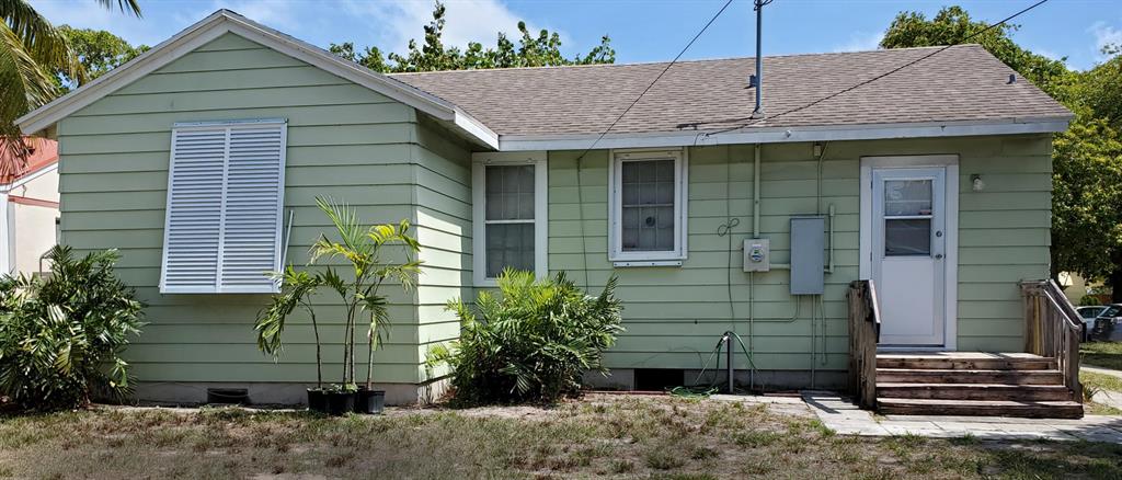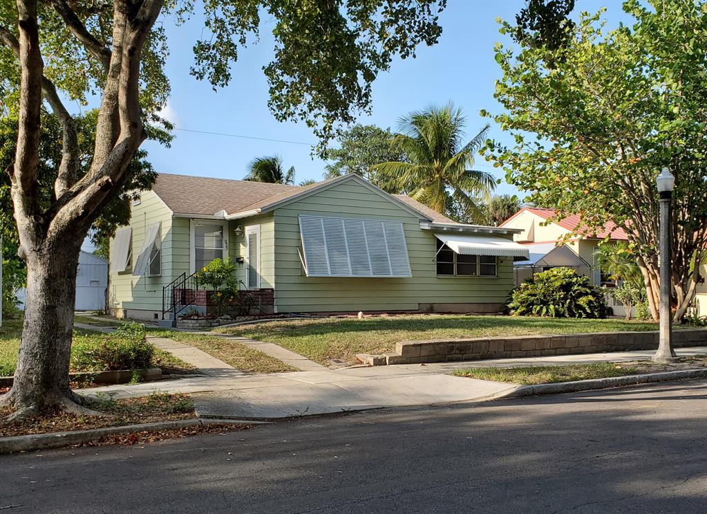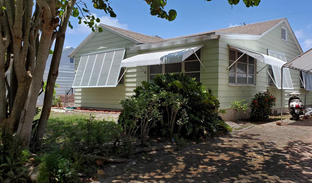 Awesome location! Walk or ride: 2.5 mi walk/bike to WPB's downtown Greenmarket, Clematis St, Rosemary Sq, etc. 3.2 mi walk/bike to PB public beach, .7 mi walk/bike to Grandview market featuring food vendors, live bands, & other events. For more adventure, ride your bike 7 miles to Lake Worth's quaint downtown or public beach & pier. Home has been owned/cared for by same family for 67 years (owner has original blueprints)! New roof 2011, oak hrdwd flrs, quality heavy gauge aluminum siding., lots of windows, HUGE, spacious attic, Xtra Lrg (7' x 4') closet backs up directly to only bath (easy convert to xtra half bath-see floorplan). 6 Bahama shutters (2005) from Folding Shutter Corp. Xtra deep lot (125'). det. 1 Car Gar. w electric and water can be a legal guest cottage (zoned SF14)