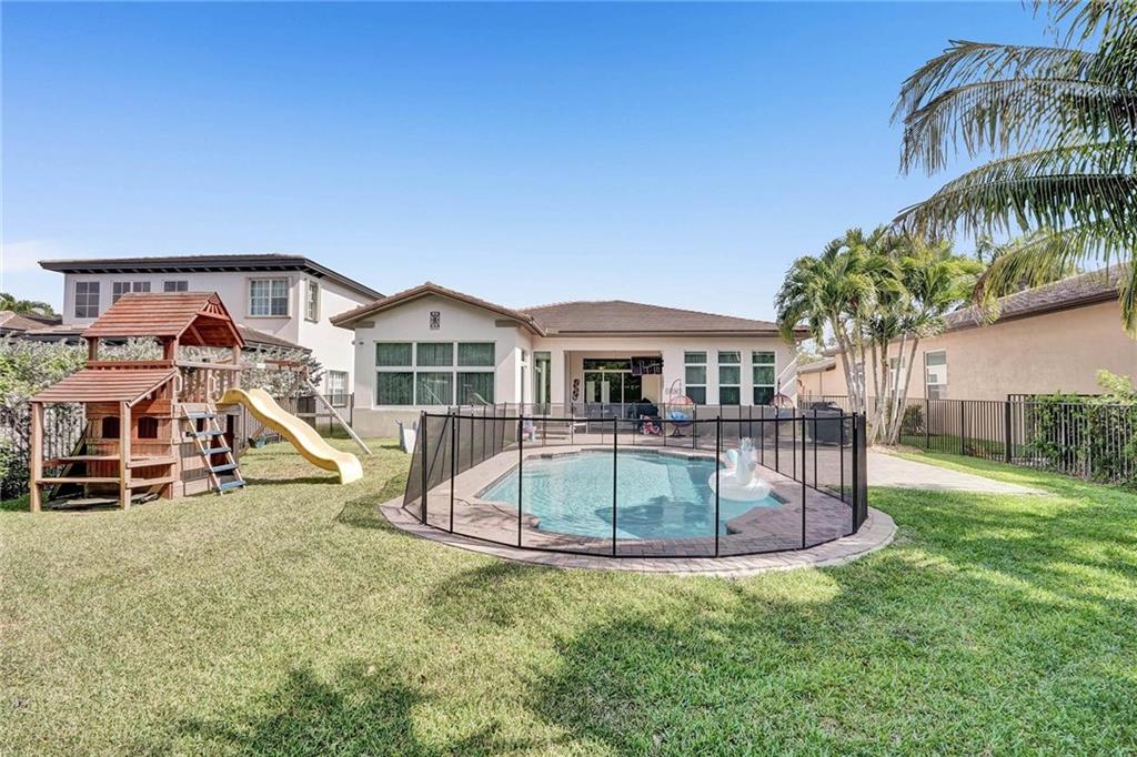 Beautiful Heron Bay Four Bedroom Pool home in Meadowbrook, This property has Brand New High End Hurricane Impact Windows (over 50k,) Salt Water Pool, big backyard with privacy, spacious patio/pool area, Tri-Split floor plan with 3 full bathrooms, laundry room, + Den that could be used as 5th bedroom. *Open Kitching with a lot of light, a lot of storage, and plenty of county space. *Tall Impact windows give you a lot of natural light throughout the house. *Private and quiet spacious backyard with no one behind you. Truly a gem of Heron Bay / Parkland Living.