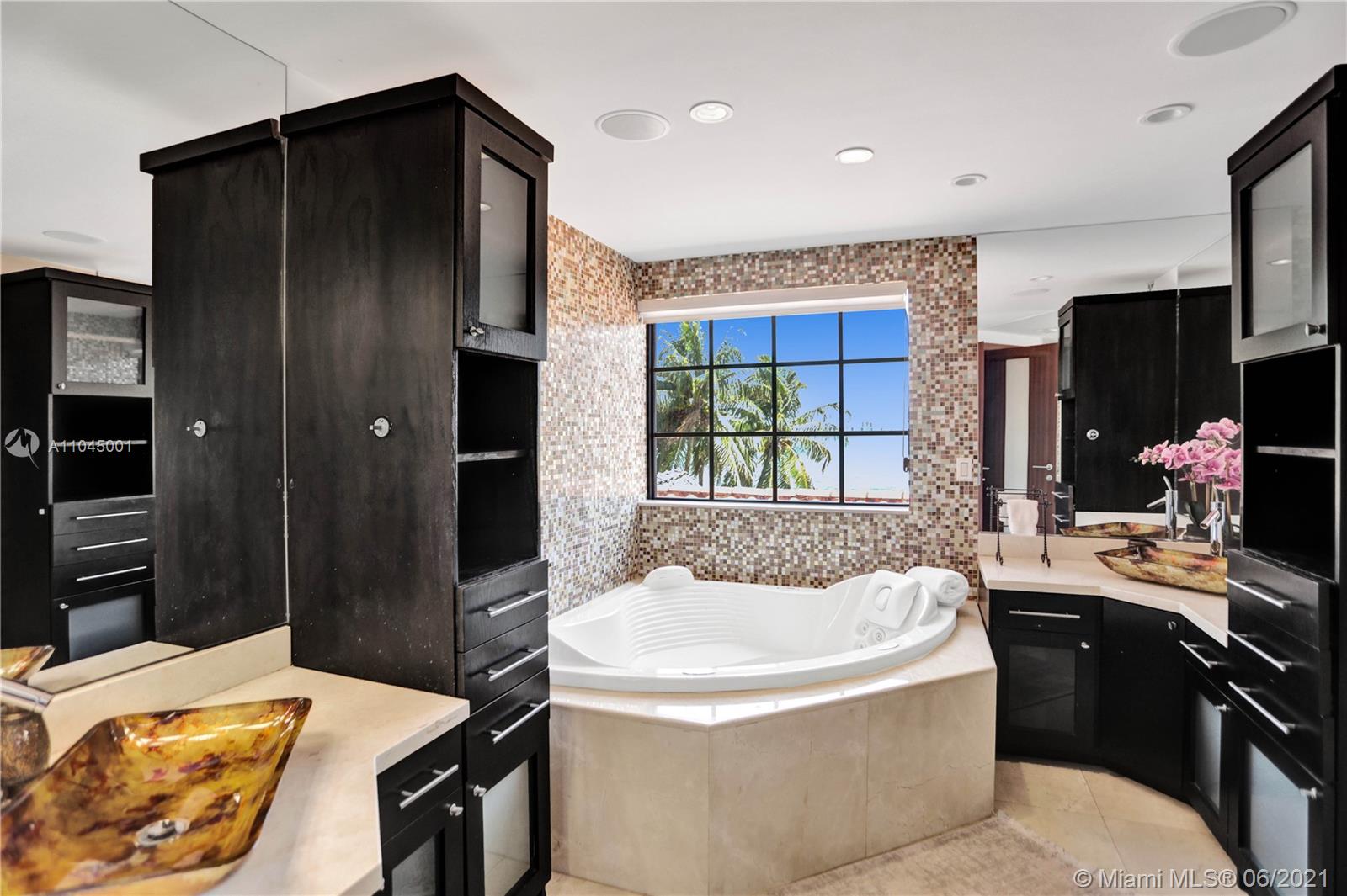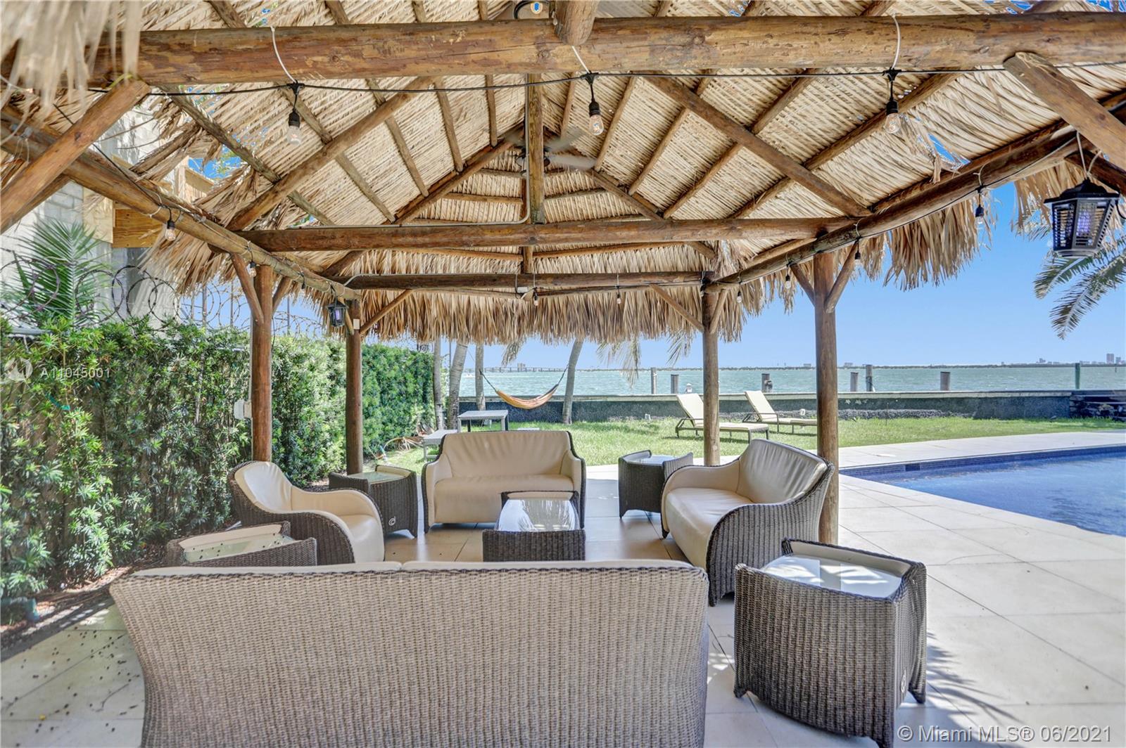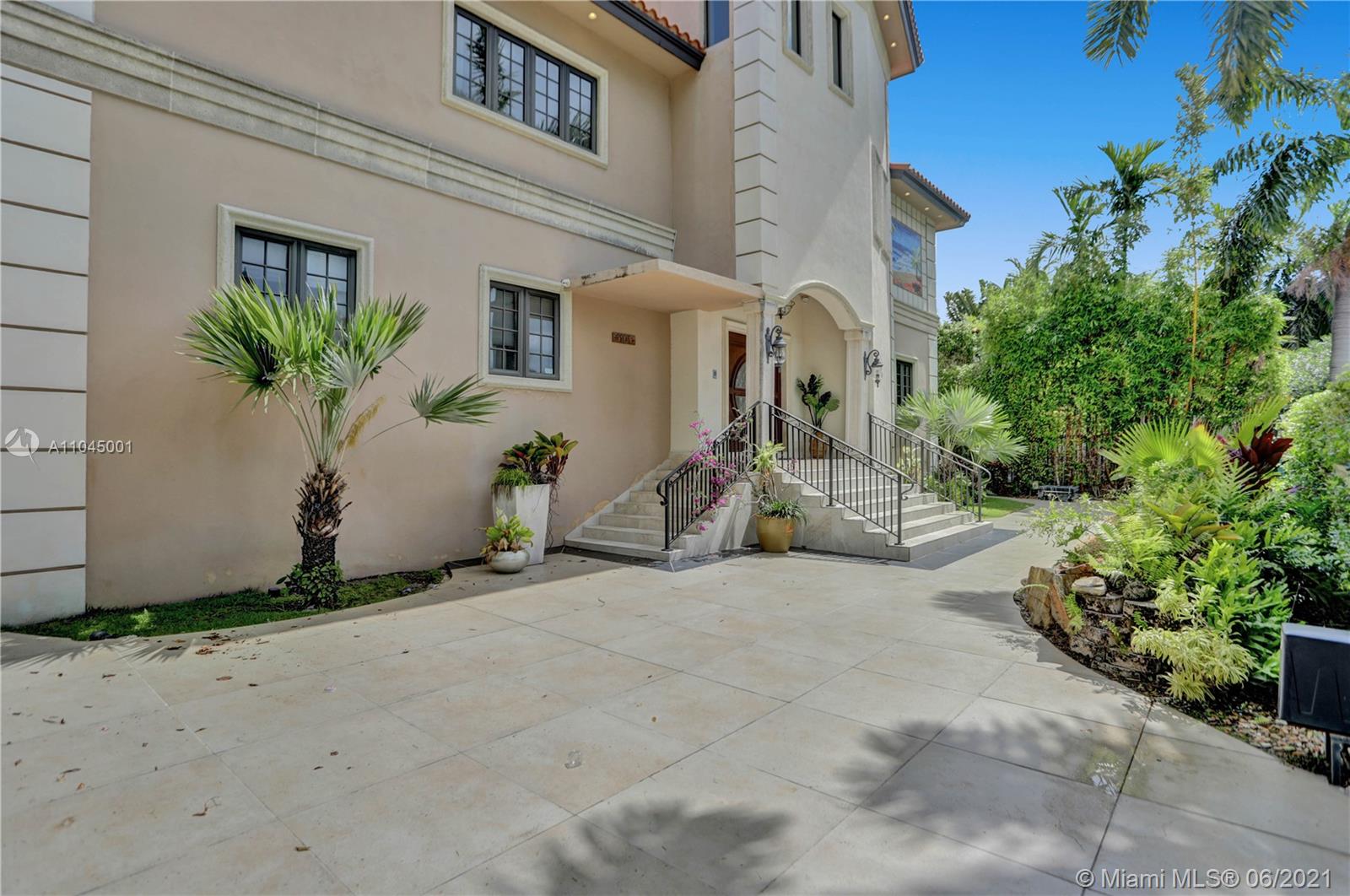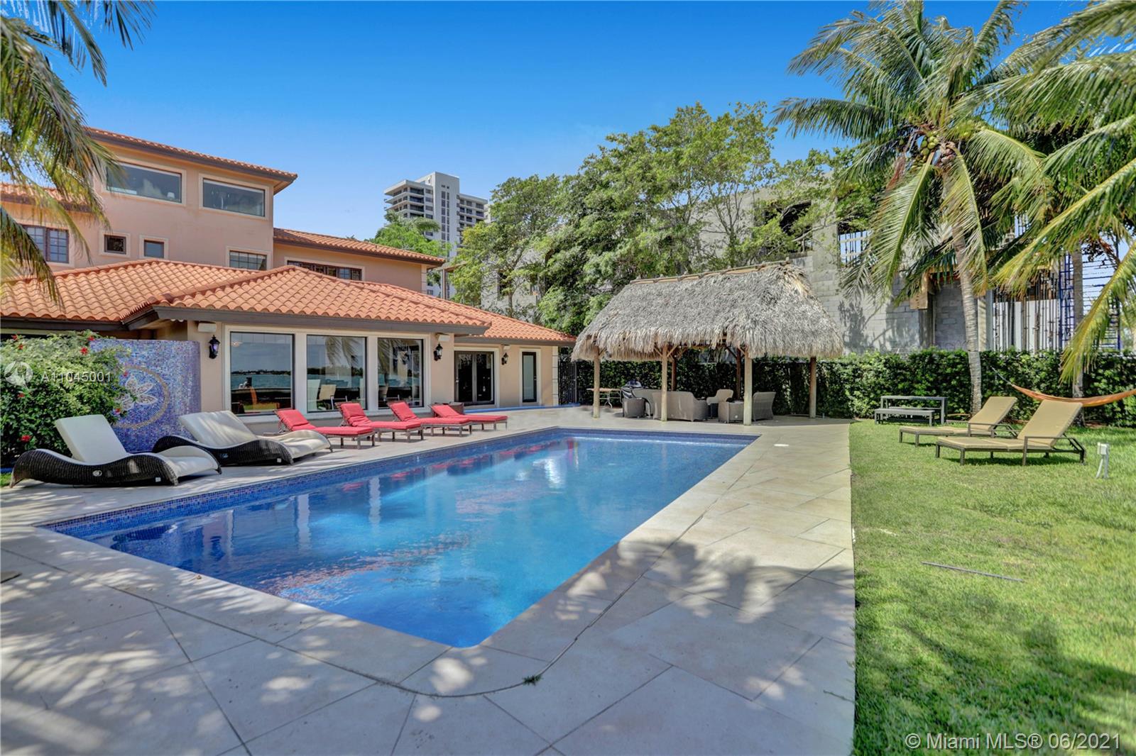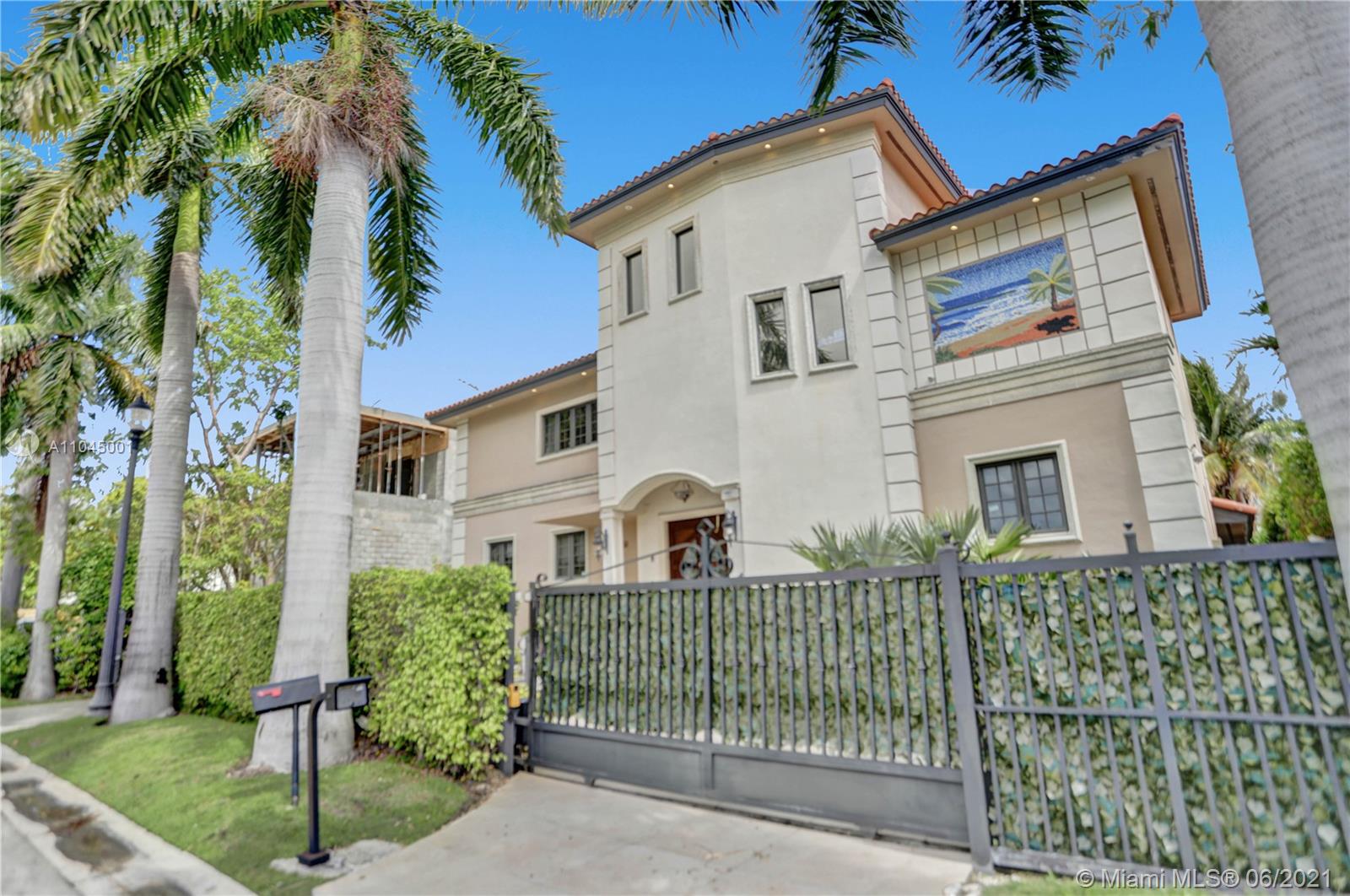 Beautiful Mediterranean three story gated waterfront home located in the prestigious Venetian Isles with amazing wide views of Biscayne Bay and Miami skyline from almost every room! 6 bedrooms and 6 baths, it was rebuilt in 2005 and has open light and bright living areas that have marble floors in the main areas and wood flooring in the bedrooms. Impact windows and doors. The open kitchen has stainless steel appliances including wine cooler. The main suite has a custom closet and master bath with spa tub and separate shower. The grounds have lush landscaping and a heated pool with mosaic tile. There is a Tiki hut and a 65 ft. dock with water frontage of 75 feet. Sunset views plus a great location!