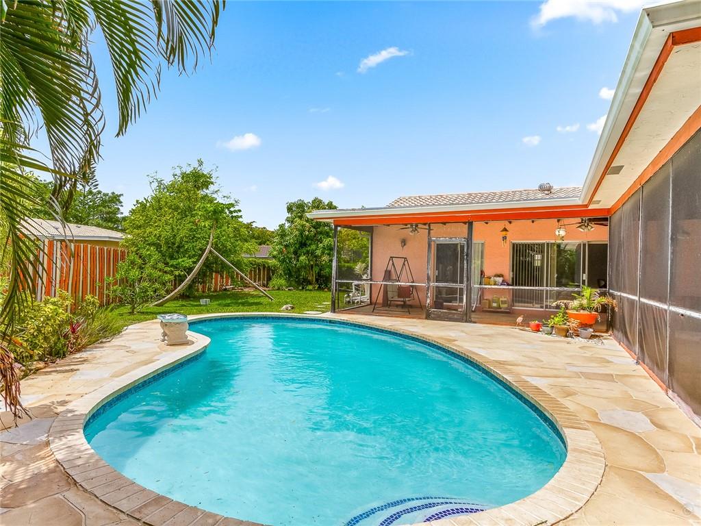 WATCH THE TOUR. Big 4-bedroom pool home in the desirable Westchester section of Coral Springs. Located just down the street from Westchester Elementary & the Tennis & Aquatic Sportsplex, not to mention Dr. Paul's Dog Park and the Panther’s Ice Den. No HOA dues here! Fenced yard with plenty of green space, an open pool, and spacious L-shaped screened patio. The European-style Kitchen was remodeled in 2018 with white cabinets and SS appliances. The AC replaced and the master bath remodeled in 2018. The pool was resurfaced in 2019, and the washer & dryer new in 2020. You have a formal living room, dining room, kitchen/great room, and a big laundry room. Beautiful cherrywood flooring throughout the main living areas, including the HUGE master bedroom. A great home in a wonderful neighborhood.