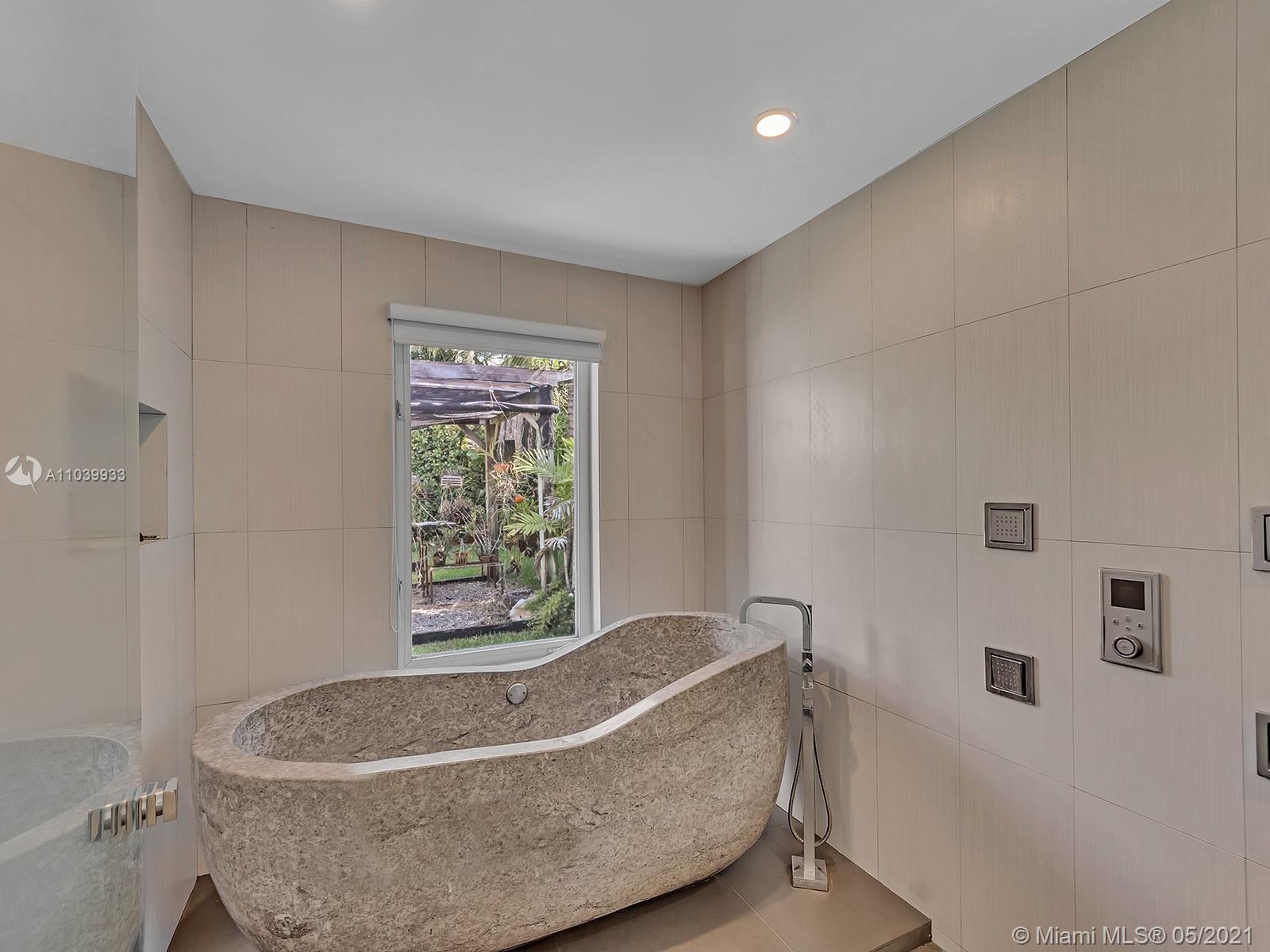 Welcome to a lovely home nested in desirable Coral Gables Riviera Section 2, 2748 Sq.Ft Actual Area. Enjoy this spacious 3 bedroom 3 full bath, completely renovated from the studs in 2010, features open kitchen with Euro kitchen cabinetry (white Italian) ample area for family breakfast/brunches, top-of-the-line stainless steel appliances, living & dining area with lots of natural light, 2X2 quartz flooring throughout, two en-suite bedrooms with walk in closets, master bath with shower and granite carved tub made in Bali, impact windows & doors, built in speakers; Crystal tiled pool, salt system, 9ft deep,15x30. Exterior area surrounded by manicured landscaping ideal for relaxing & entertaining. Well for irrigation, sprinklers, electrical lines, phone & cable buried. 1 car garage, must see!