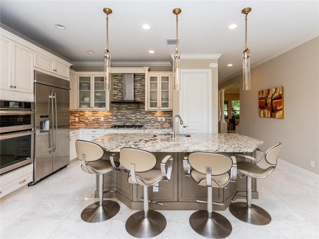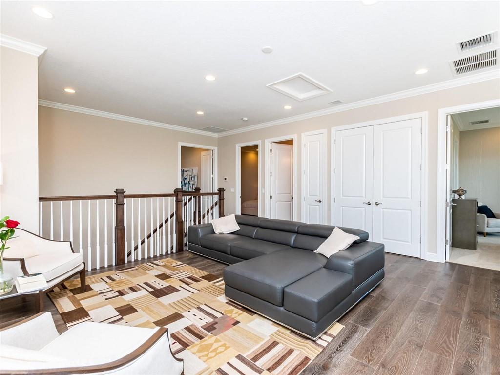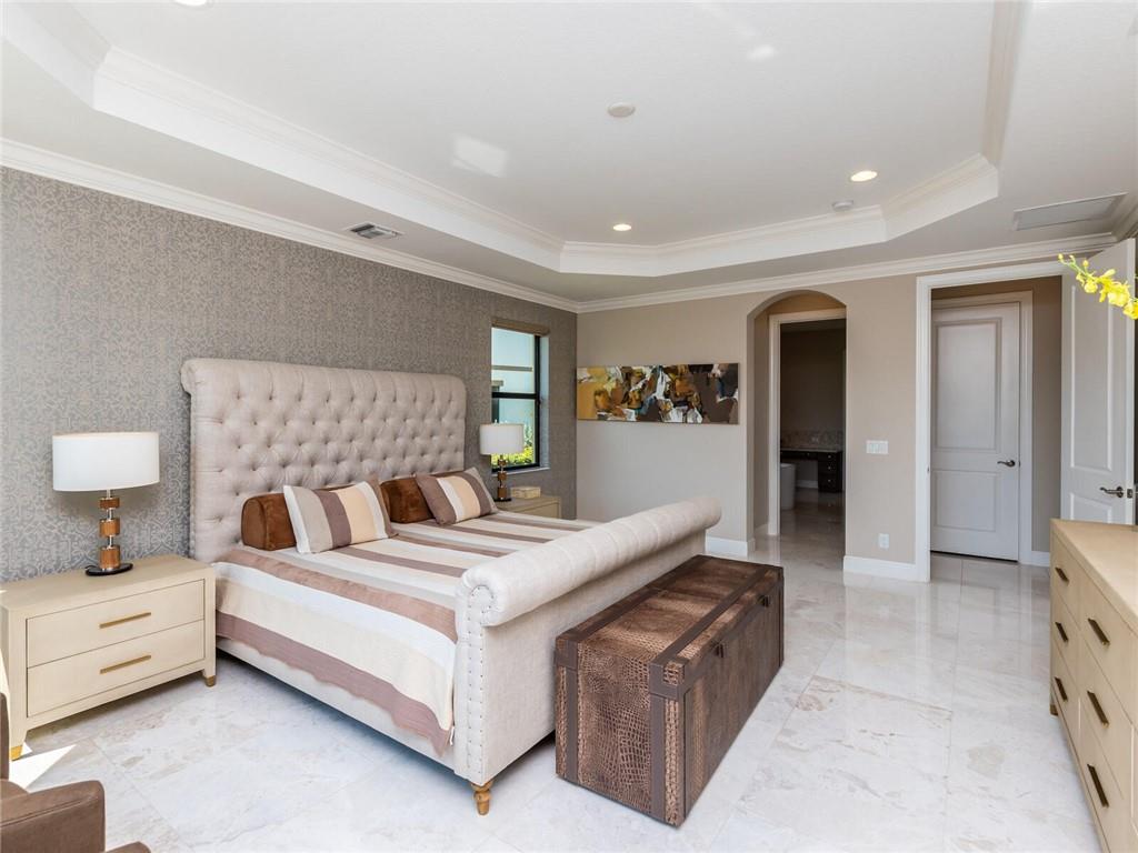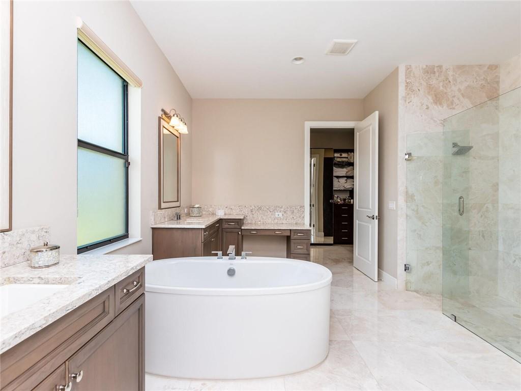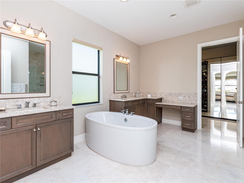 Gorgeous 4 beds + library/office (5th Bedroom) & loft/bonus room, 4 baths, 3 cg pool home on a private oversized lake lot highly upgraded w/ over $150,000 in upgrades including impact windows & doors, marble & wood in living areas, upgraded kitchen top of the line designer solid maple wood cabinets, select granite, glass tile backsplash, Jenn Air appliances including gas stove & walk-in pantry. Family rm overlooks the covered patio, pool, lake & backyard oasis. Library w/double glass drs, full cabana bth & laund. rm. The master suite is on the 1st fl w/ walk-in/built-in closet & all marble bthrm w/ dual vanities, free-standing soaking tub & shower. The 2nd fl boast a bonus room/loft as well as the remainder 3 beds & 2 baths. The community offers resort style amenities. Nearby A-schools!