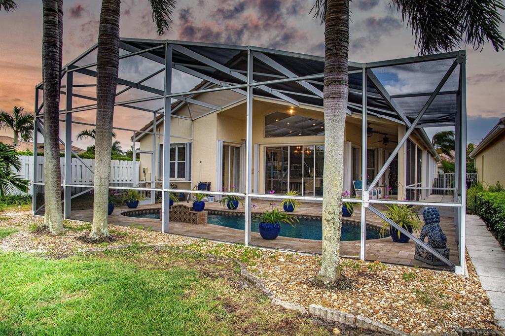 crown moldings, storm shutters, mirrored closet doors, huge built in closet, granite kitchen and backsplash, oversized granite counter for barstools, granite bathrooms with custom mirrors, additional washer dryer in master bath,20in tile, ceiling led spots throughout house, marble pavers in pool area, split bedroom plan. bright spacious open floor plan--move in ready, fenced yard