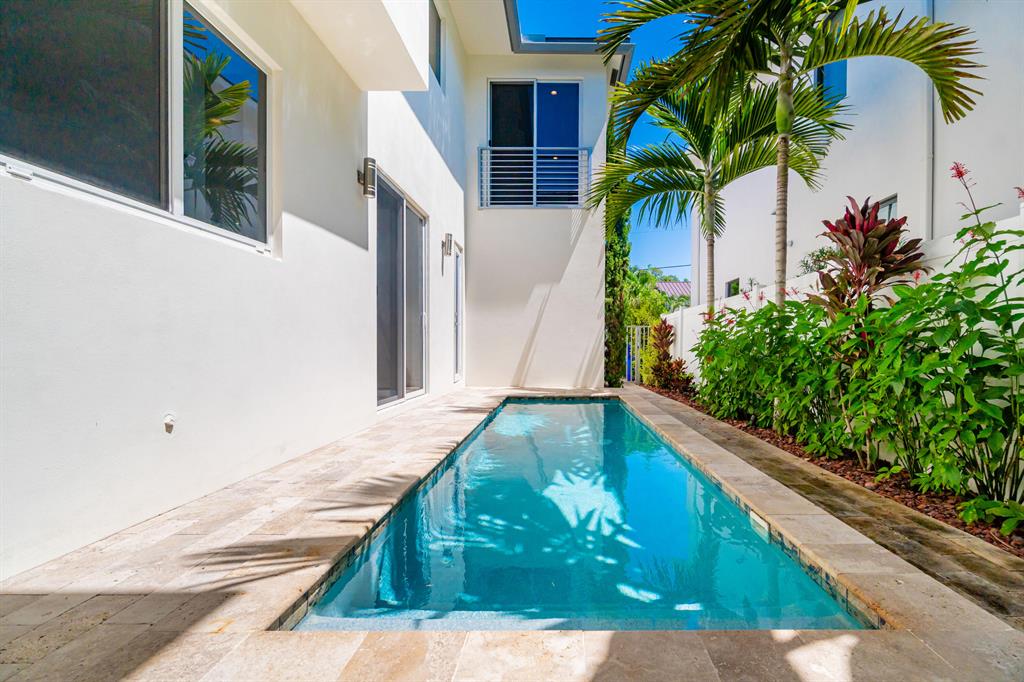 Gorgeous townhome in Victoria Park! NO HOA! Built in 2016, this home has over 2,400 sq ft of living space with 3 bedrooms & 2.5 baths, 2 car garage, private pool & a manicured backyard. The main level has porcelain tile throughout, an eat-in kitchen with imported Italian cabinetry, quartz countertops & high-end KitchenAid appliances. Also on this level is the living area with access to the travertine-tiled patio with pool & the backyard. The 2nd level has bamboo flooring, 2 guest bedrooms with a full bath, a den & a large laundry room. The 2nd floor master retreat offers 2 custom walk-in closets & an on-suite bath with Italian cabinetry, double sinks, frameless shower & a soaking tub. All windows & doors are hurricane impact. Walking distance to Las Olas & just minutes from the Beaches!