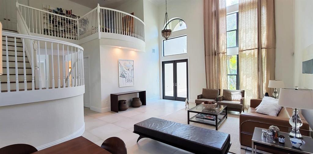 Rare opportunity in the upscale gated community in Boca Raton !! This spotless contemporary fully remodeled 5 bed/3 ba offers clean lines throughout. Designer choices in this stunning home set it apart from every other house in the neighborhood. The dining and living rooms boasts 19ft ceiling with rectified porcelain tile throughout the main floor, and engineering wood on upper floor and stairs. Hurricane impact windows with energy-efficient low-e glass.Open kitchen features high-end stainless steel appliances, and a large quartz waterfall island. Customized cabinetry and quartz countertops in the kitchen, bathrooms, and laundry. Secluded outdoor area features an enclosed patio and an outdoor kitchen covered by a stunning overgrown aluminum pergola.