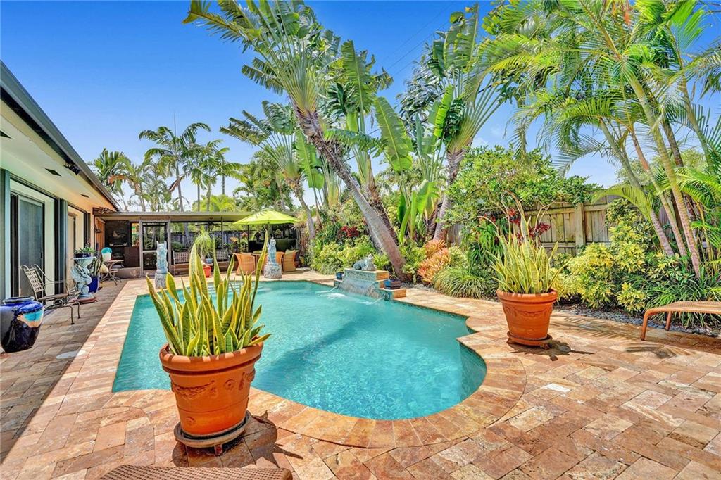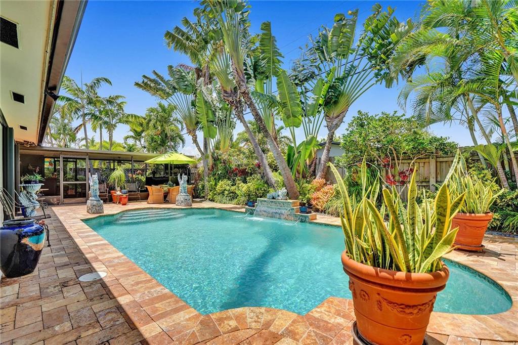 Magnificent Pool home located in one of the most desirable sections of Fort Lauderdale. 3 bedrooms and an office ! 2 bath and gorgeous curb appeal! Garage converted to finished living area, electric panel & wiring replaced, a/c 4 ton upgrade, remodeled heated pool with color changing LED light, travertine tile patio, fenced yard with lush tropical landscaping & lighting, large screened lanai. Close to the beach, great surrounding entertainment, dining, and shopping.