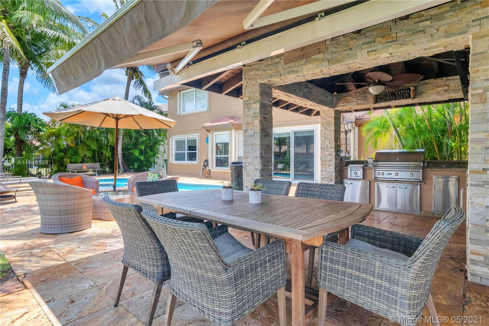 Beautiful 2 story home in a gated community, 24-hour security, guarded gate, playground, basketball and tennis court, A+ rated schools. The property features an open concept floor plan. Kitchen with high end SS appliances and kitchen island cooktop perfect for entertaining. 3 car garage with room for tools and equipment. washer/dryer are inside the garage to reduce appliance noise inside the living area. The second floor features the master bedroom and bath with a tub, dual showers, and a walk-in closet. The outdoor area features a 450sf pool with a heated jacuzzi and pool shower. Great outdoor kitchen space with a 4 burner bbq, charcoal bbq, full sink, refrigerator, Beer tap & tv to entertain all the family and guests.