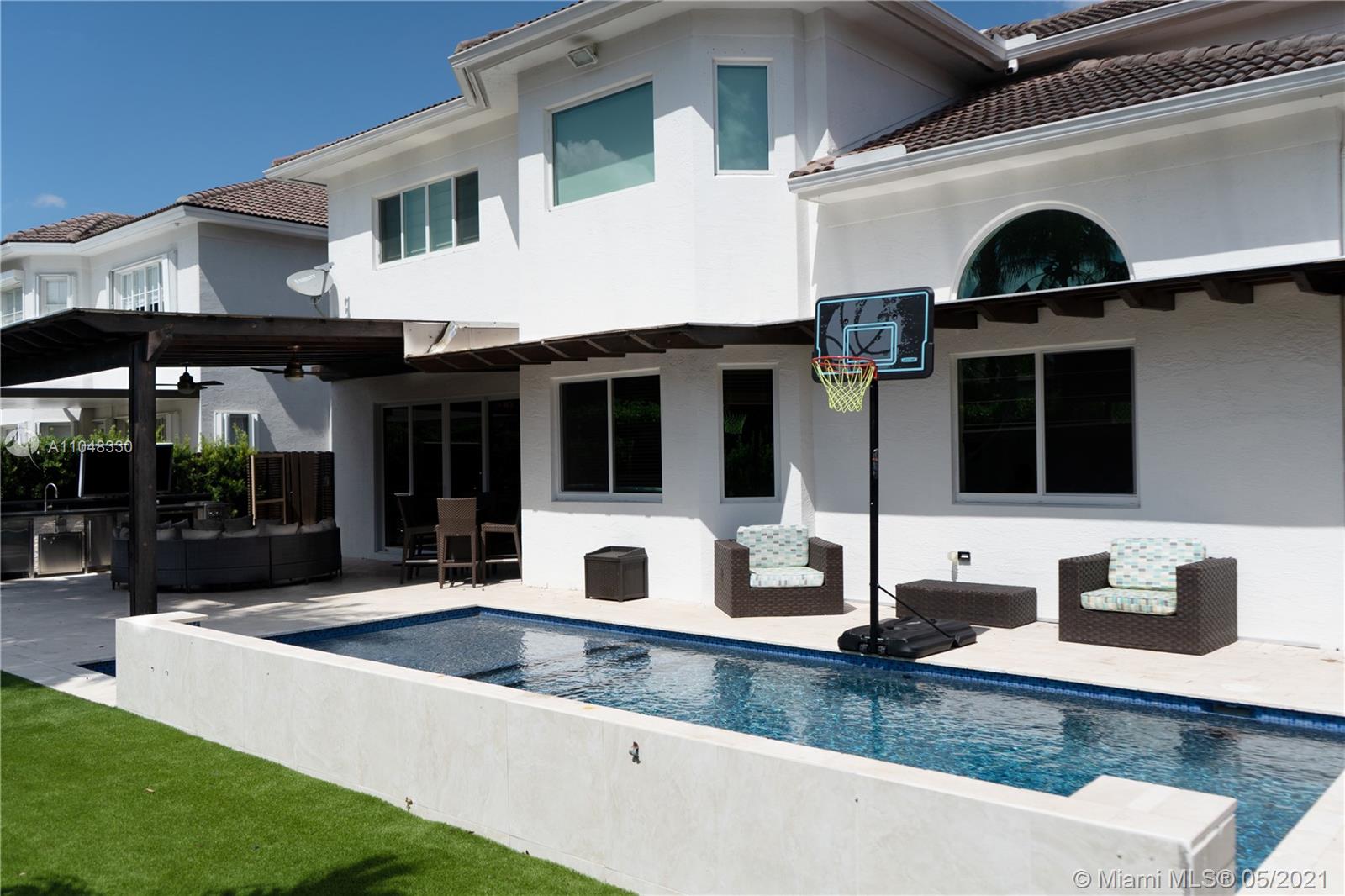 Magnificent opportunity to own this beautiful home in the heart of Doral at desirable Mediterranea in Doral Isles, over 3,600 feet of luxurious open living area, a must see since it won't last. 5 Bedrooms and 3.5 bathrooms, one guestroom downstairs with a full bath. Oversized master, walk-in closets, and oversized master ensuite. High ceiling foyer/living area. Gorgeous staircase! Pool, jacuzzi, complete outdoor kitchen with built-in BBQ, ice machine, wine cellar, refrigerator and patio TV all under a beautiful pergola. Make your appointment today, easy to show, seller motivated
