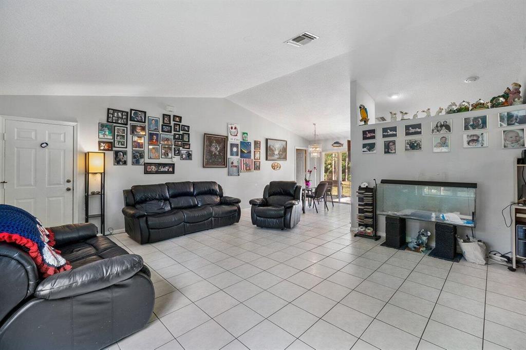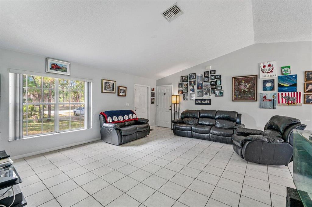Country oasis near all the amenities ''city'' has to offer! Highly desirable Acreage location. Original owner maintained CBS 3/2 w/ 2 car garage. You will love the soaring vaulted ceilings and huge family room perfect for large family gatherings! Kitchen is adjacent w/ peninsula ''island'' and ample cabinet space. Window above the sink lets in the beautiful private 1.15 acre yard. Fenced in yard and gate at driveway. Quiet street. Bring your work vehicles, RV's, ATV's, motorcycles, pets, hobbies...almost anything goes. Complete set of hurricane shutters included. New water system 2021. New water heater 2018.