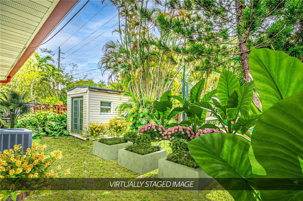 HUGE CORNER LOT IN POINSETTIA HEIGHTS IS BACK ON MARKET. Escape the hustle and bustle of the nearby city and walk behind the gate and make this your very own whimsical tropical oasis on this oversized corner lot. Step inside the home and enjoy the flow of the living space from the open kitchen to the solarium.This is a well designed three-bedroom split floor plan home.The kitchen has custom cabinets and high-end concrete countertop designed by local artist, Jake Brady. Both bathrooms have been beautifully updated. Equidistant from downtown Ft. Lauderdale and Wilton Manors, approx 2 miles to the beach, a few blocks to 13th Street and Flagler Village. ACTUAL AND STAGED PHOTOS.