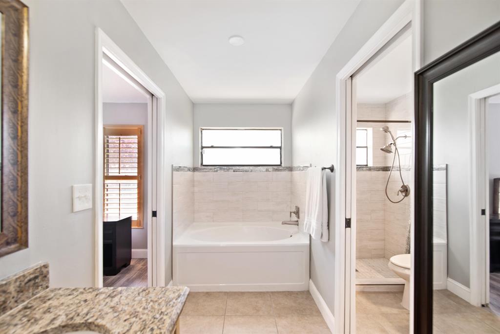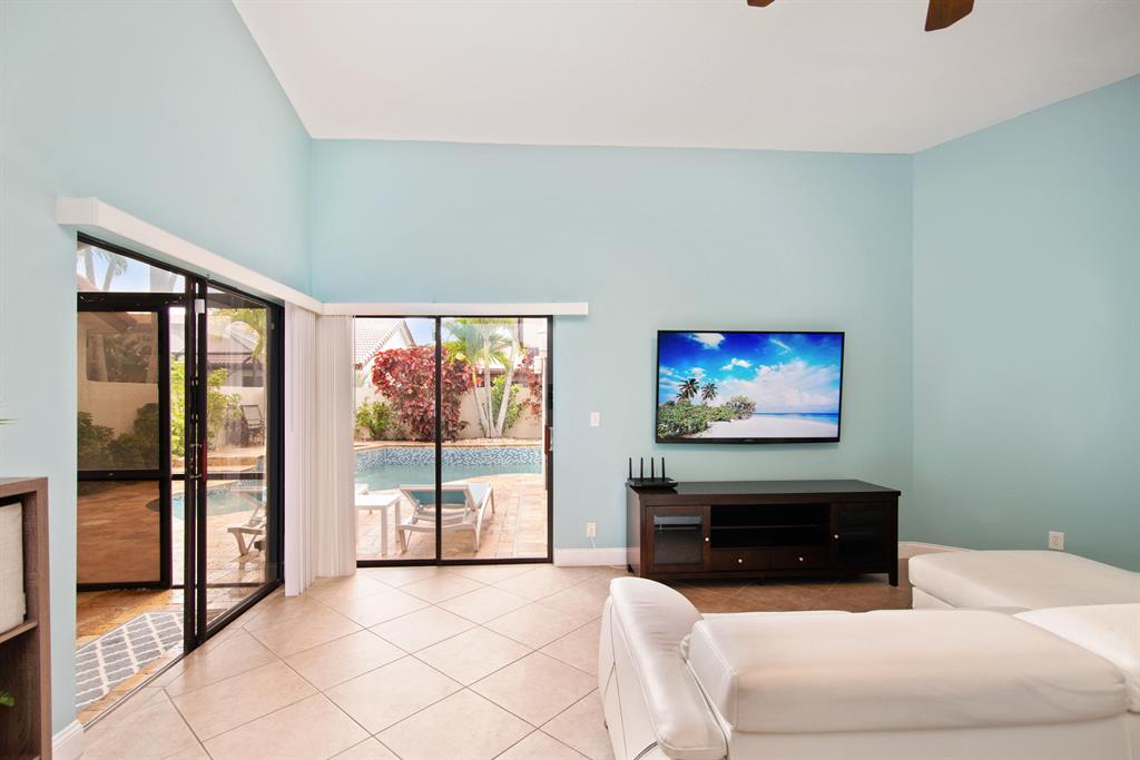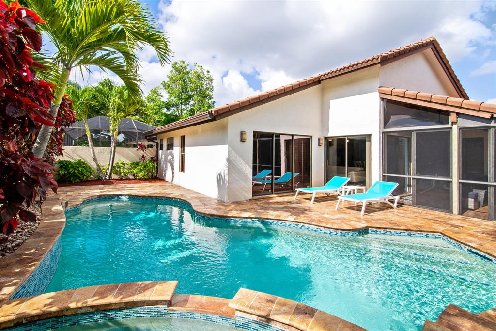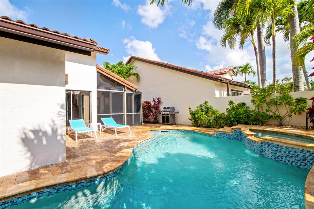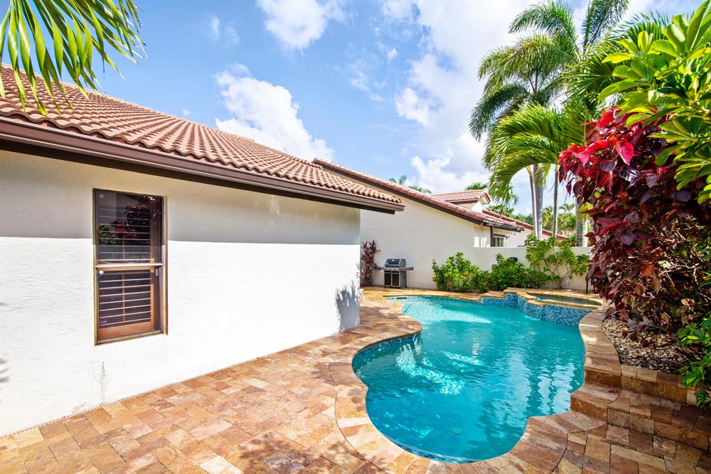 Beautifully updated 3 bed, 2 bath, 1,577 sqft home w/ open floor plan and tropical backyard oasis with saltwater heated pool and spa, travertine pool deck, indoor/outdoor living/Florida room, plenty of natural light to keep the living area bright, plantation shutters, stainless steel appliances and dual sink, granite countertops, 2006 roof, 2015 water heater, 2014 AC, large master bedroom and bathroom with his & her walk-in closets, his & her vanities, deep soaking tub, 2 car garage, friendly neighborhood of Villa Nova, low HOA fees, community tennis court, conveniently located next to Del Prado Elementary, near 3 grocery stores, the Boca Raton Town Center Mall, parks, schools, highways, and places of worship. Click link for virtual tour, https://my.matterport.com/show/?m=9VGwjdJUz3