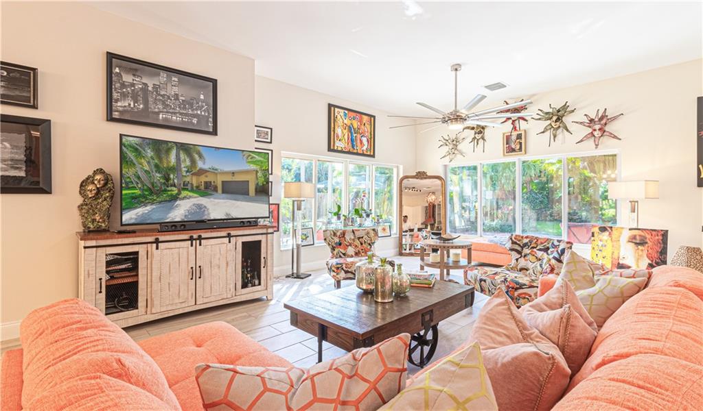 Newly Built 2 bedroom 2 bath pool home w/ garage on a tropically landscaped private lot. A lofty covered front entrance w/ glass double doors welcomes you into this finely appointed home designed by an interior decorator. The expansive living areas offer heightened ceilings, natural light & plenty of room for entertaining. A chef’s delight, modern kitchen equipped w/ Thor appliances including a 6 burning gas range, deep farm house sink, mix of dark & light cabinetry tied together w/ mosaic tiled back splash & solid stone countertops w/ waterfall edge. Impact windows & sliding glass surround the living area, leading out to the private tropical back yard, heated pool, bbq area & covered gazebo! Modern bathrooms featuring rainfall glass enclosed showers, custom closets & beautiful fixtures.