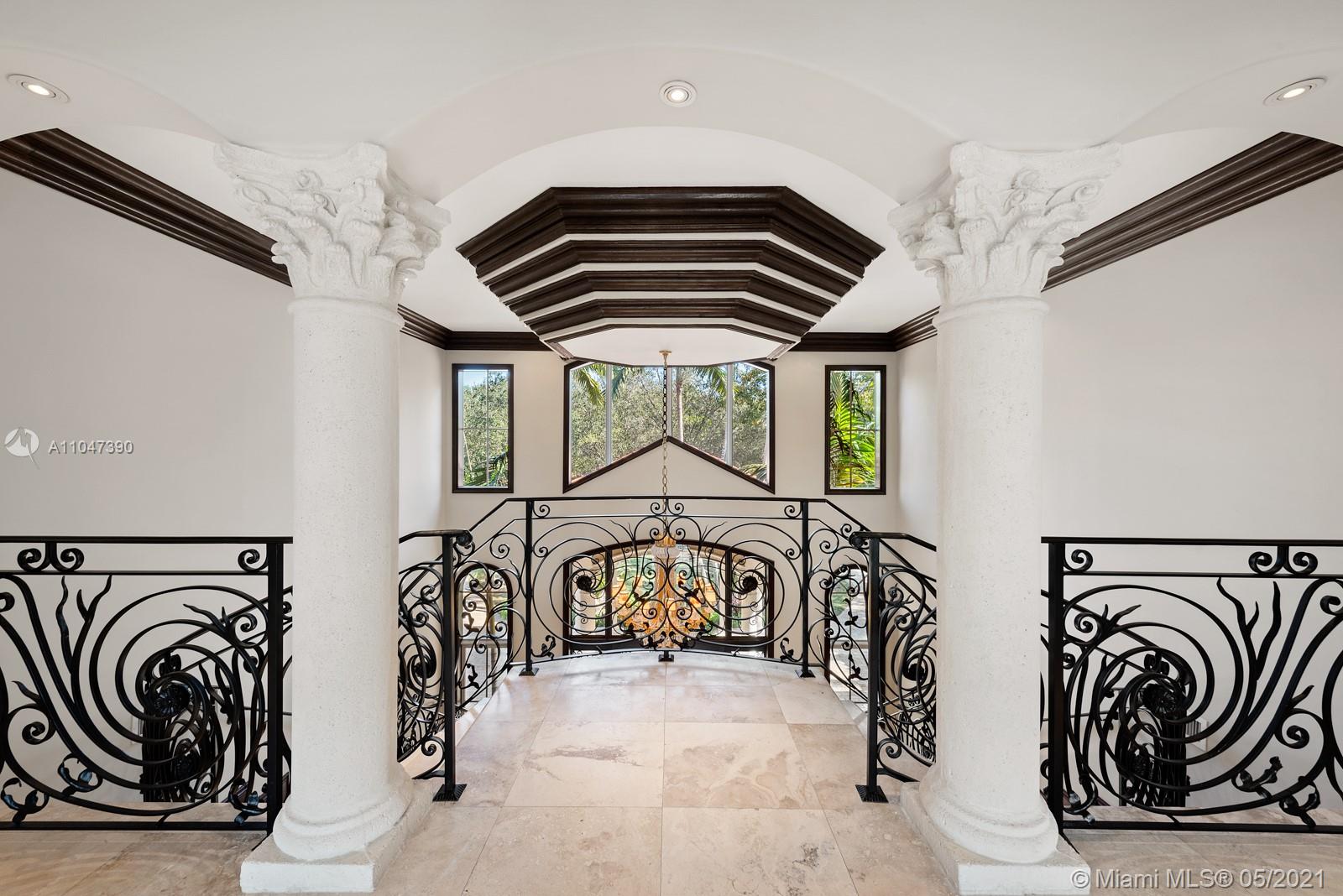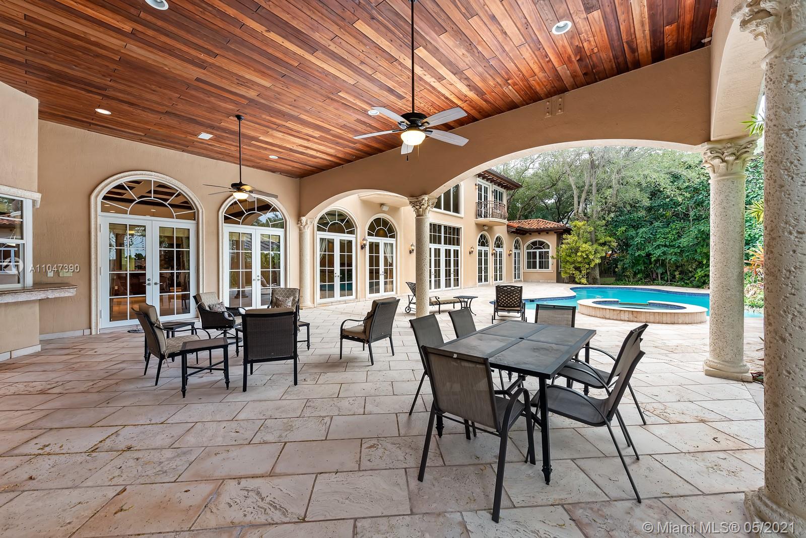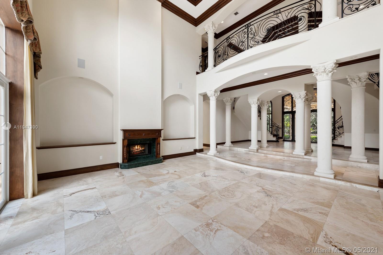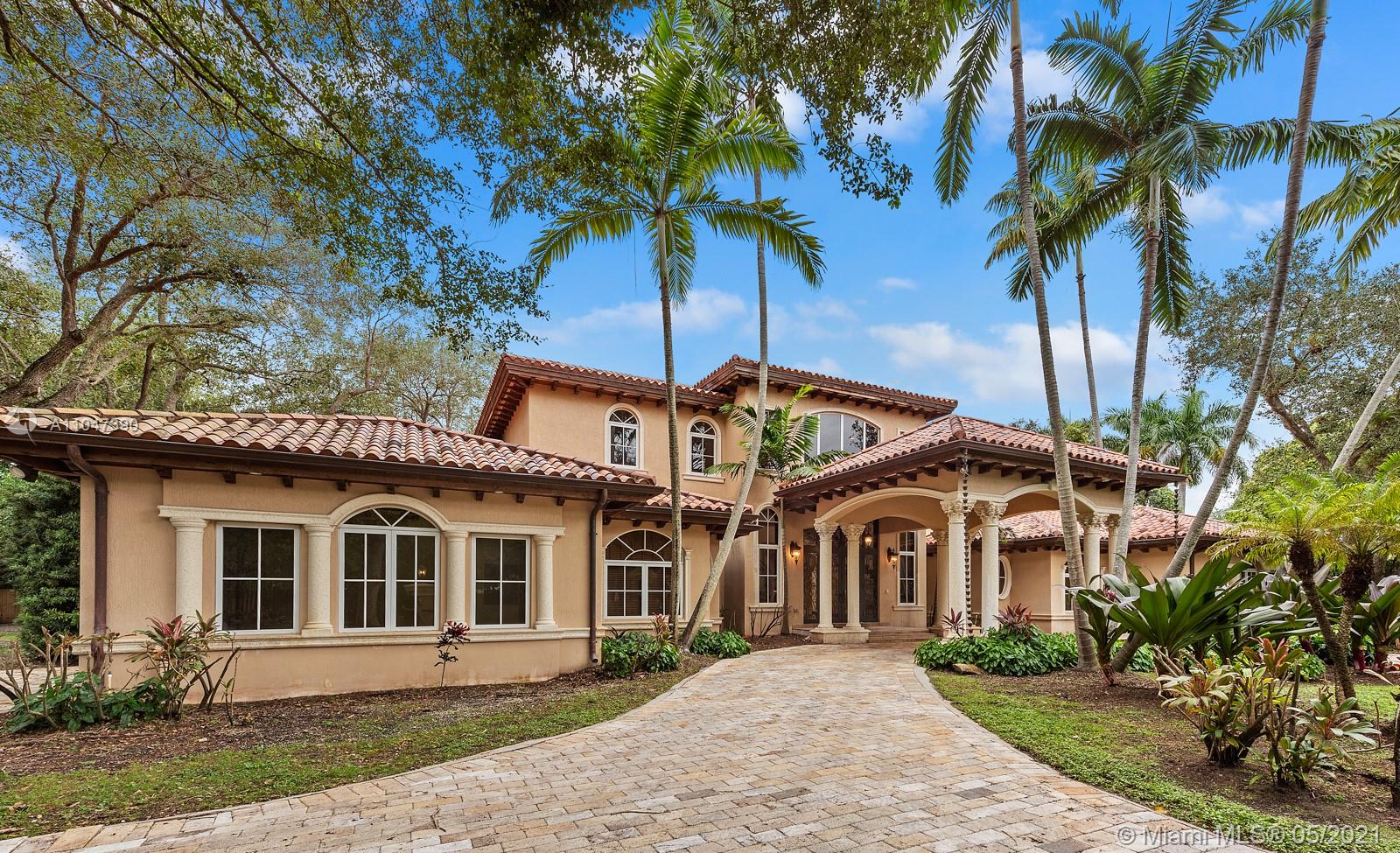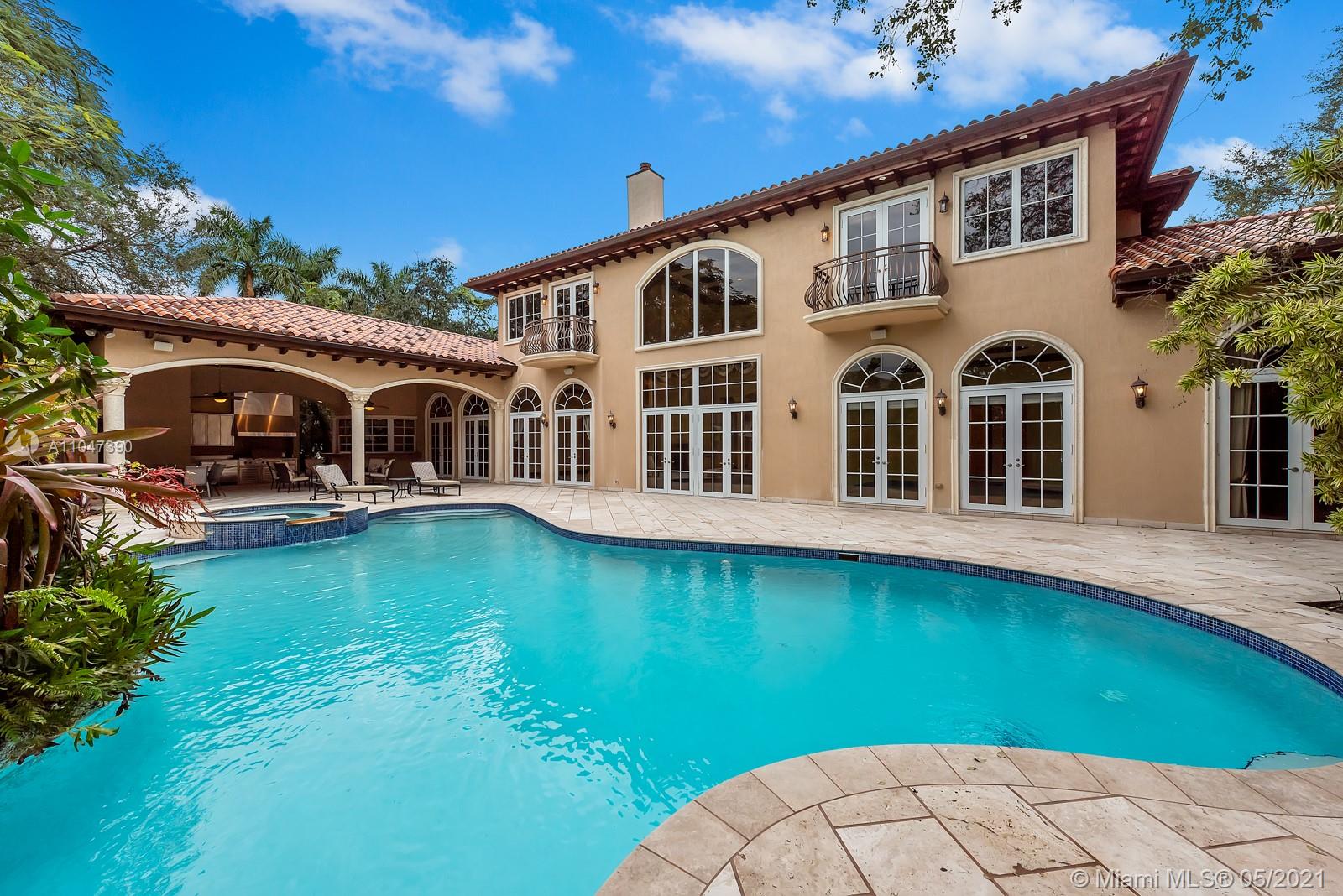 A Beautiful classic! This two-story Mediterranean estate home sits on a 38,000 Sq. Ft. gated lot in sought-after N Pinecrest, surrounded by gorgeous landscaping. The entrance has soaring ceilings with a staircase accented by classic columns—travertine floors throughout w/floor-to-ceiling windows. The master suite located on the first floor has a lavish marble bathroom and steam room. Upstairs there are four additional ensuite bedrooms. This home is perfect for entertaining with fantastic living spaces, including a formal living, dining, family/game room & chef’s kitchen featuring all top-tier appliances. It offers ample exterior entertainment areas with modern integration and a resort-style pool. Additionally, the property includes a summer kitchen,4 car garage & guest/maid’s room.