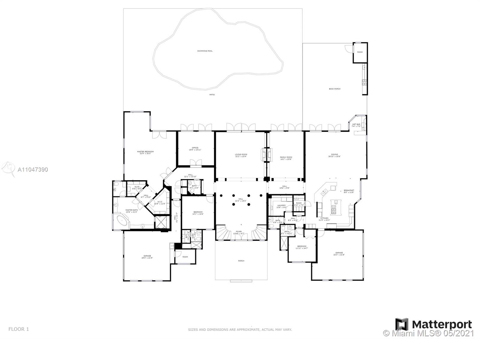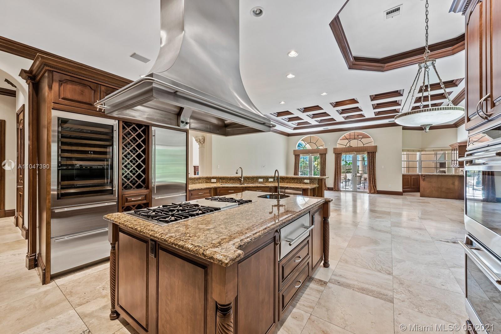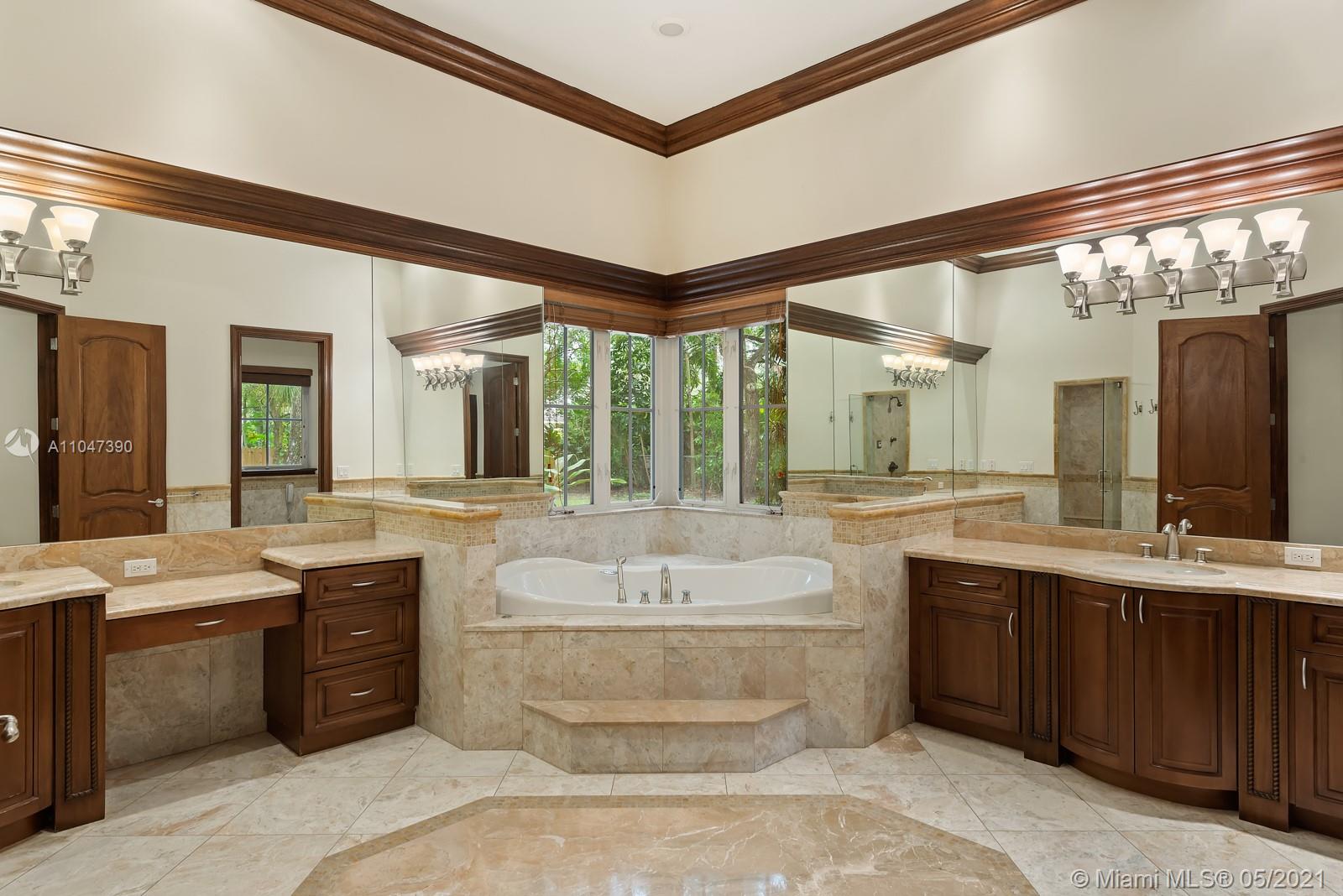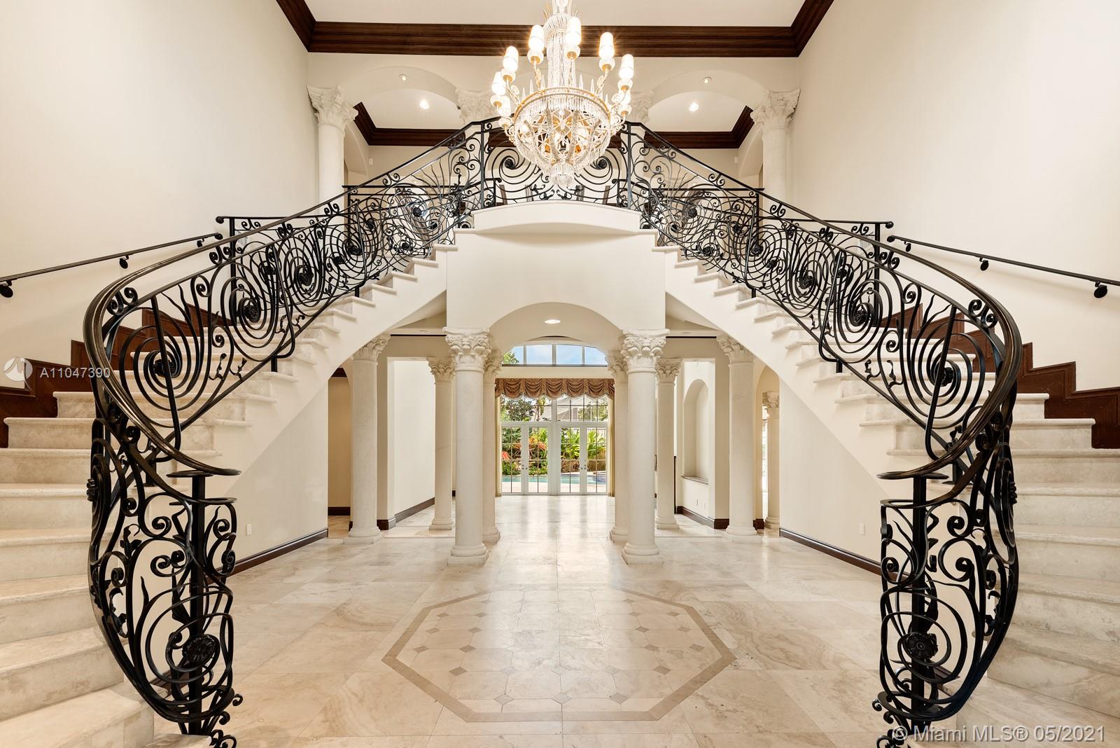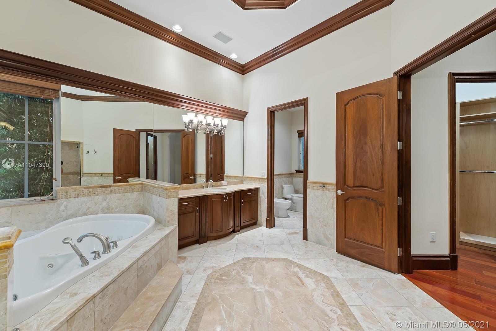 A Beautiful classic! This two-story Mediterranean estate home sits on a 38,000 Sq. Ft. gated lot in sought-after N Pinecrest, surrounded by gorgeous landscaping. The entrance has soaring ceilings with a staircase accented by classic columns—travertine floors throughout w/floor-to-ceiling windows. The master suite located on the first floor has a lavish marble bathroom and steam room. Upstairs there are four additional ensuite bedrooms. This home is perfect for entertaining with fantastic living spaces, including a formal living, dining, family/game room & chef’s kitchen featuring all top-tier appliances. It offers ample exterior entertainment areas with modern integration and a resort-style pool. Additionally, the property includes a summer kitchen,4 car garage & guest/maid’s room.