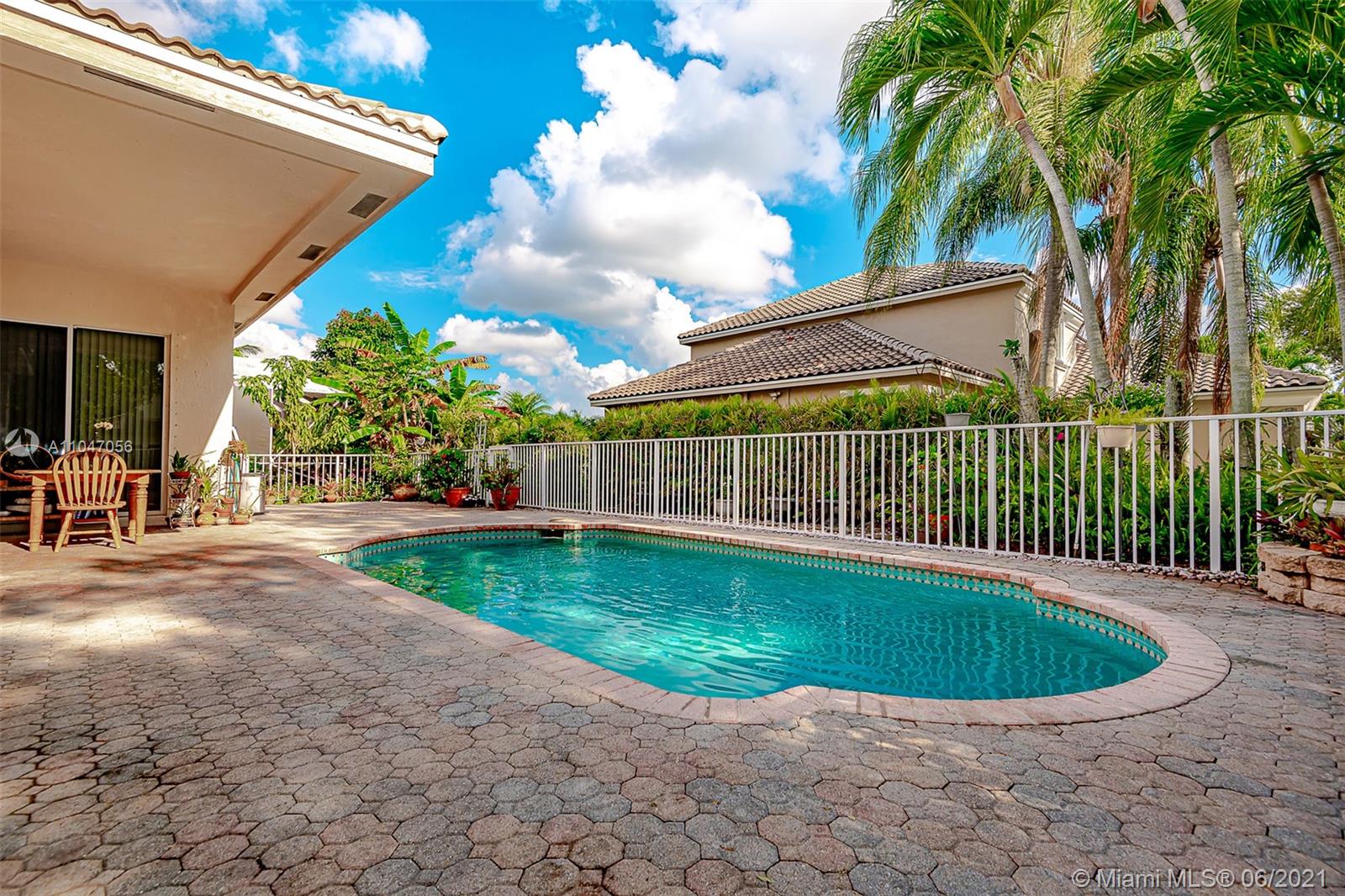 Beautiful corner lot with a new roof, pool fenced, lots of fruit trees, and orchid plants in Waterside of Coral Creek. Open and Spacious Living Areas Offer Vaulted Ceilings, crown molding, 2 car garage, Hurricane shutters, irrigation system, security system hookup and circular driveway. Living Areas Have VIEW to the patio, ¼ WATERVIEW and pool. Split Bedroom Floor Plan with Separate Living, Family and Formal Dining Room. Kitchen Offers, Appliances with Granite Counter Tops. An Eating Nook and Pantry.4 Bed Rooms,2 1/2 Baths, Double Sink, roman Tub, double flush toilets, Separate Shower, Closet. Laundry room and stainless steel appliances. Freshly painted. Low hoa fee $91 quarterly. As IS Sale. DU approval. Showing from 1pm till 7:pm. Bring in Highest and the BEST offer