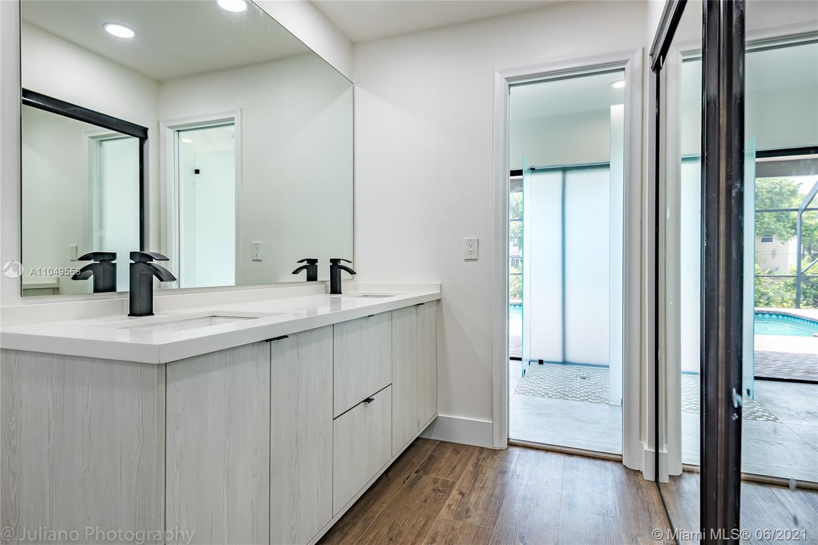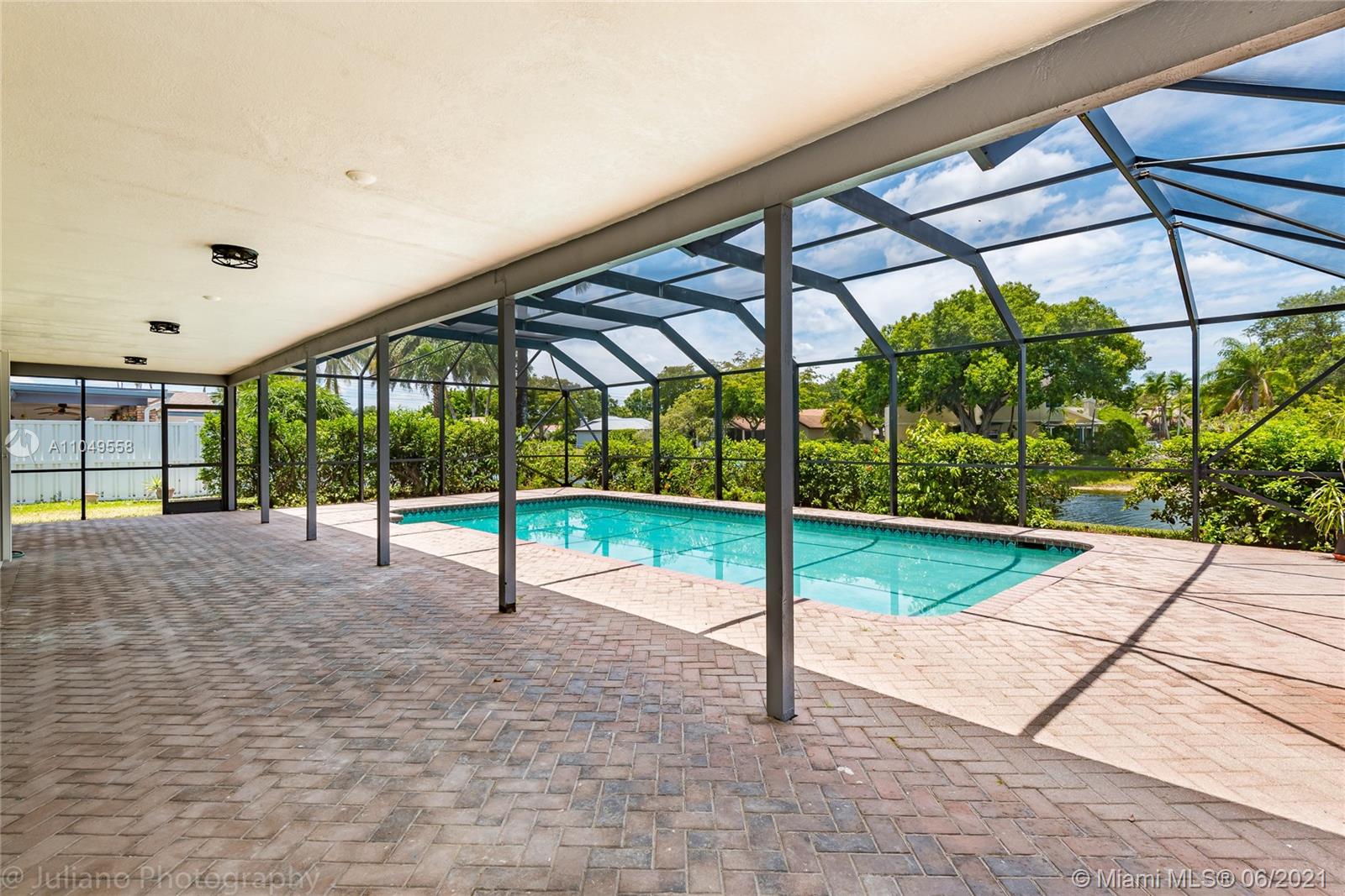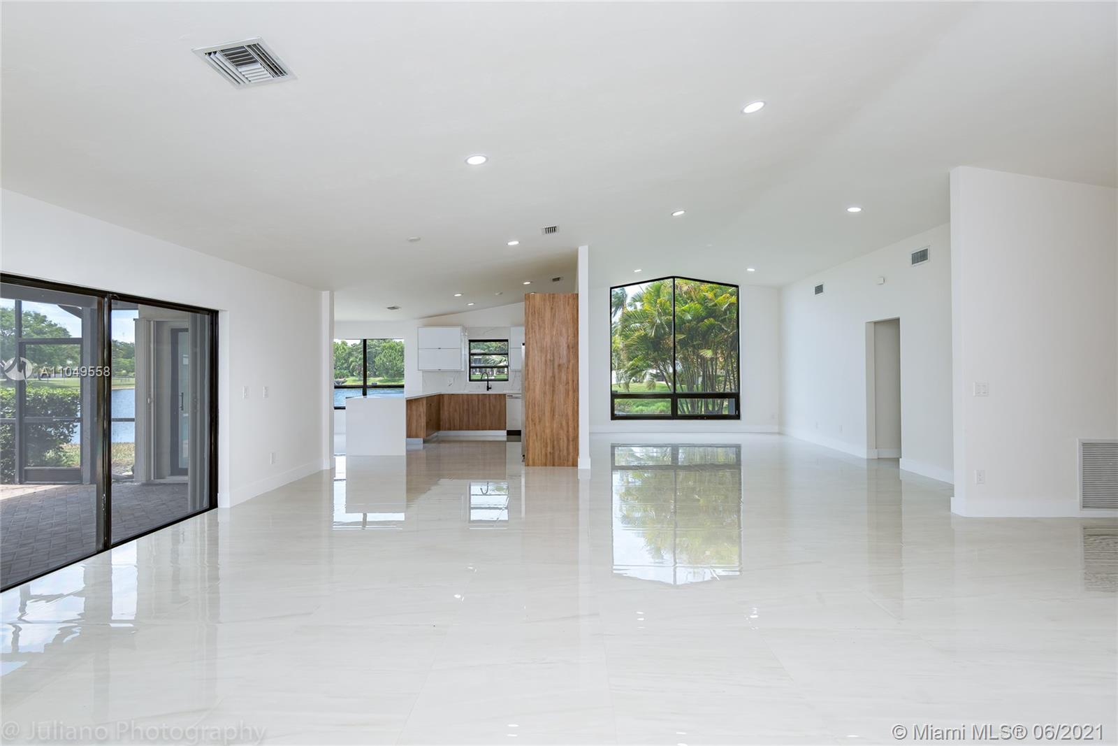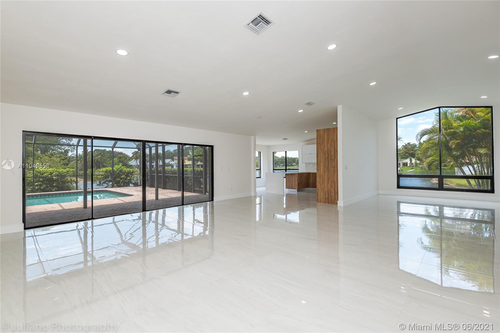 You won't want to miss this unique home located in Cooper City's Rock Creek neighborhood. This home has an amazing open floor plan and is perfectly laid out with lots of living space, 4 bedrooms, and 2 ½ baths. From the moment you walk through the front door, there are floor-to-ceiling glass windows with AMAZING water views and high ceilings.The lot is surrounded by water on 2 sides and makes for a complete gem. Imported porcelain floors in living area and vinyl in bedrooms. Italian kitchen and bathrooms. New roof and accordion shutters