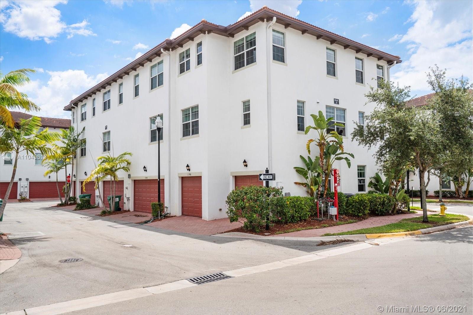 MUST SEE MOVE-IN READY END UNIT TOWNHOUSE! Located in the Coveted GATED Community of Montclair, this 3 story Split Living home is one of the few HIGHLY sought-after corner homes. It features open concept living, 3 bedrooms, 3 bathrooms WITH a Bedroom & Full Bathroom on EACH level! Also, BRAND-NEW Wood Laminate flooring (NO CARPET), laundry room and a TWO car garage with individual doors. Community has a Clubhouse, Gym, Swimming Pool, Children's Playground AND Over 1/2 Mile Lakefront Walking Path. All this in walking distance to Miramar Town Center with Shopping and Restaurants, Miramar Cultural Center and the Miramar Police Headquarters. Association fees covers Cable, Security, In-Unit Alarm Monitoring, Landscaping, Exterior Maintenance & Amenities.
