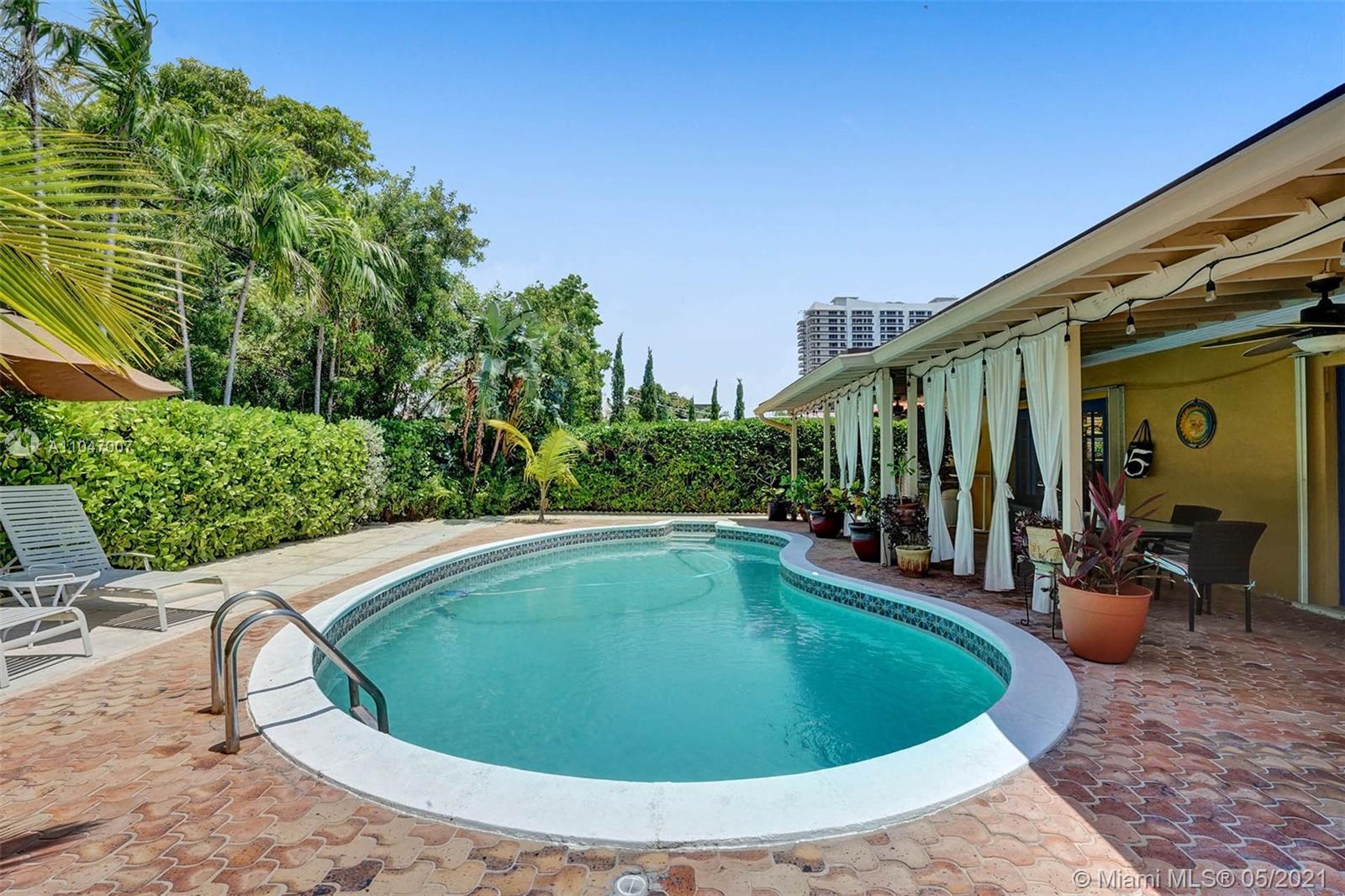 Located in the middle of Biscayne Bay on the island town of North Bay Village, this home has 5bed, 3baths & a pool. It is perfect for someone looking to escape to a quieter & relaxing lifestyle in a safe and friendly neighborhood. Centrally located and 20 minutes to Downtown & the Brickell Financial District; 15 min to Sobe, Wynwood and Design District; and a short bike ride to the beach. The home boasts an expansive living area leading out to a spacious covered porch overlooking the pool. The 2/1 guest suite is perfectly suited for live/work, extended families & short term rental. This home is great for entertaining! Kick back, relax and enjoy the pool and a big backyard. Updates: tile roof (2016), bathrooms (2018), AC’s (2014 & 19). Your dream home awaits!