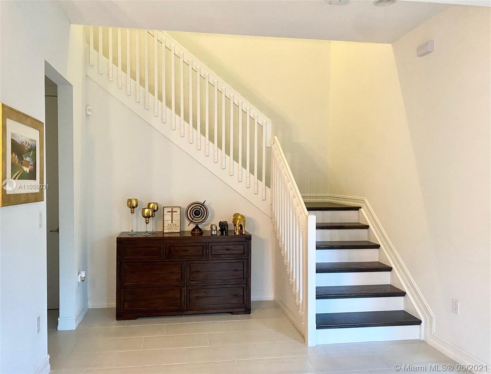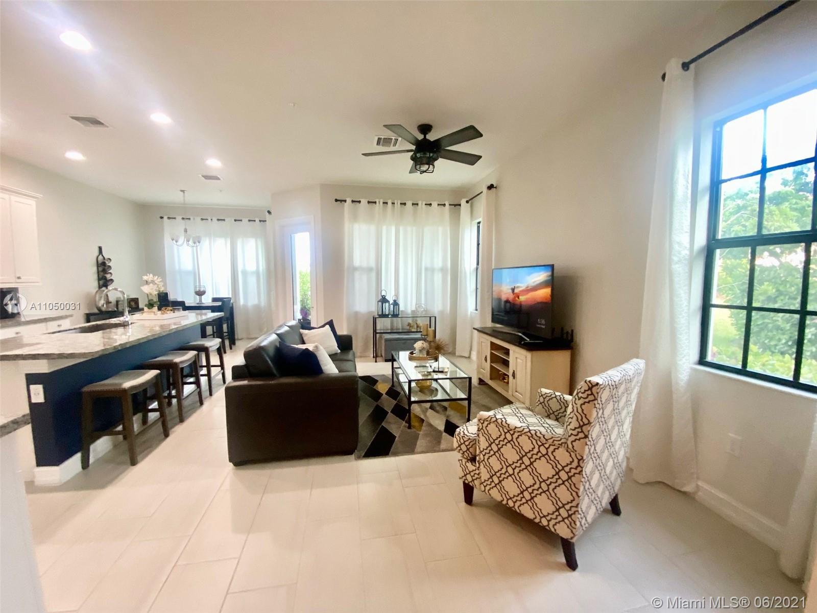 Spectacular and luxurious two-story corner townhome, centrally located in a private community of The Preserve at Rain Tree, gated community with clubhouse, heated resort-style pool, fitness center, playground, and more. Beautiful lake view from the balcony and lots of natural light inside. This home comes with an upgrade package, open space concept, kitchen island, stainless steel appliances, and granite countertops. Master bedroom has 2 walk-in closets and the laundry room is conveniently located on the second floor. Elegant wooden stairs, tile floors, 2 car garage, inside sprinklers, and high-impact windows. The roof and A/C are only 3 years old. Hunter Douglas Honeycomb shades on the second floor, curtains, fans, shelves in the garage, and chandeliers included. Low HOA, Move-In Ready.