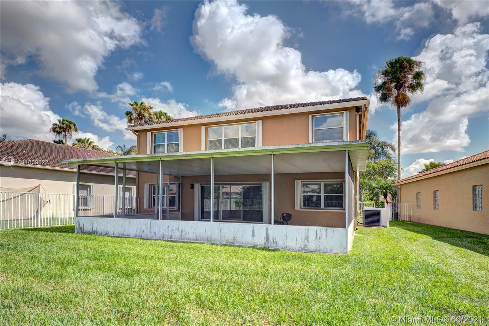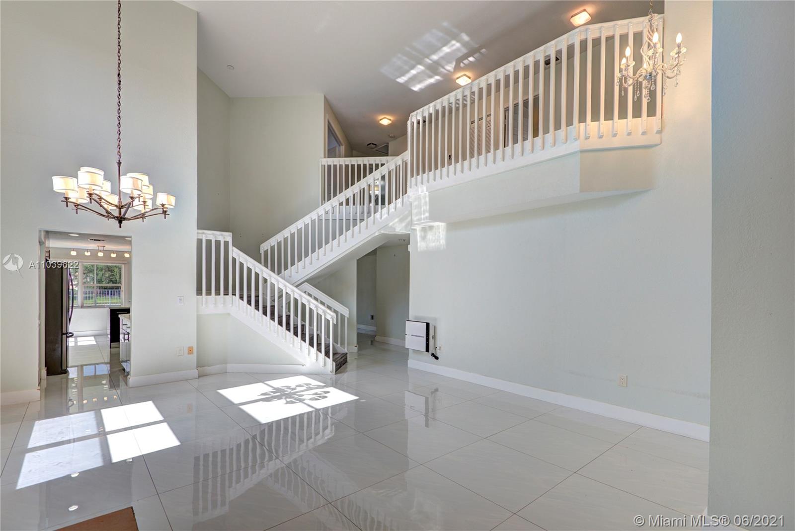 Amazing lake view home in Emerald Estates Weston Florida. Totally Remodeled large 4 bedrooms,3 bath,2 car garage with loft. Open floor plan with vaulted ceilings. Newer kitchen with Quartz counters, stainless appliances & range hood. Marble flooring on 1st floor, laminate on 2nd floor. Master bedroom upstairs with walk-in closet, bathroom with jetted tub, glass enclosed shower, and dual sinks. Jack & Jill bed/bath combo, and open loft perfect for office or den. Bedroom on 1st floor with full bath. Laundry room with cabinets, and storage closet. Enjoy the lake view from the over-sized roofed, screened patio. Accordion shutters on all windows. HOA fee includes: lawn, sprinklers, alarm, basic cable, 24 hour guard gate, pool, kid's play area & fitness room. Close to shopping & major highways.
