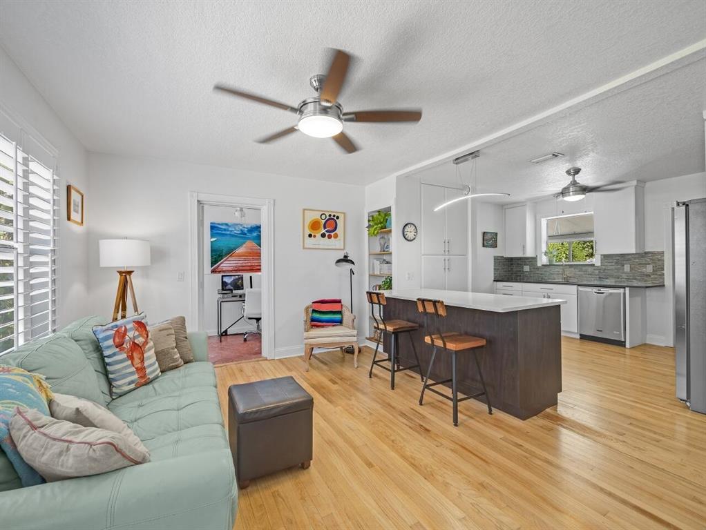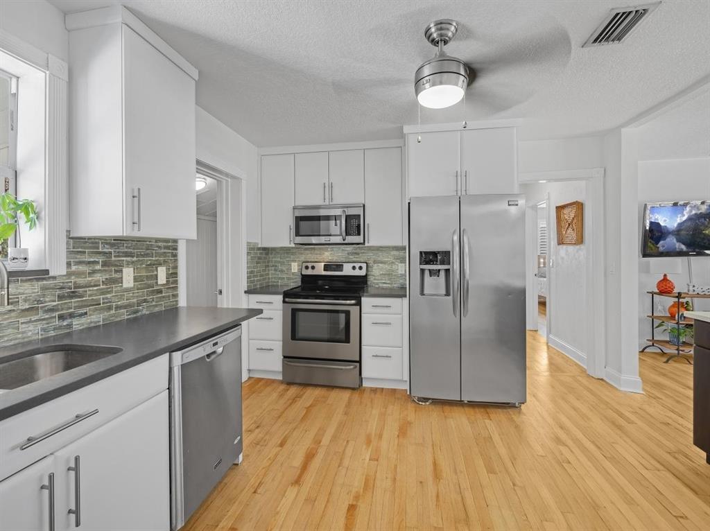 Highly sought after South Florida living with style 3Bd/1Ba with pool. This home offers an open concept living with a gorgeous kitchen, Quartz countertops and newer stainless steel appliances. Charming original solid hardwood floors throughout. Bedrooms are roomy and bright. Remodeled bathroom with large tub. Plantation shutters installed on all the windows. Impact hurricane rated front door & easy to install Armor Screen protection on all openings. Roof replaced in 2020. Newer A/C and large laundry room. Dreamy backyard with salt water pool ready to entertain your family and guests. Fully fenced backyard with plenty of room to garden and park a boat or RV. Located on a quiet street blocks from the intracoastal, a few minutes from the beach, close to the best restaurants in the area,