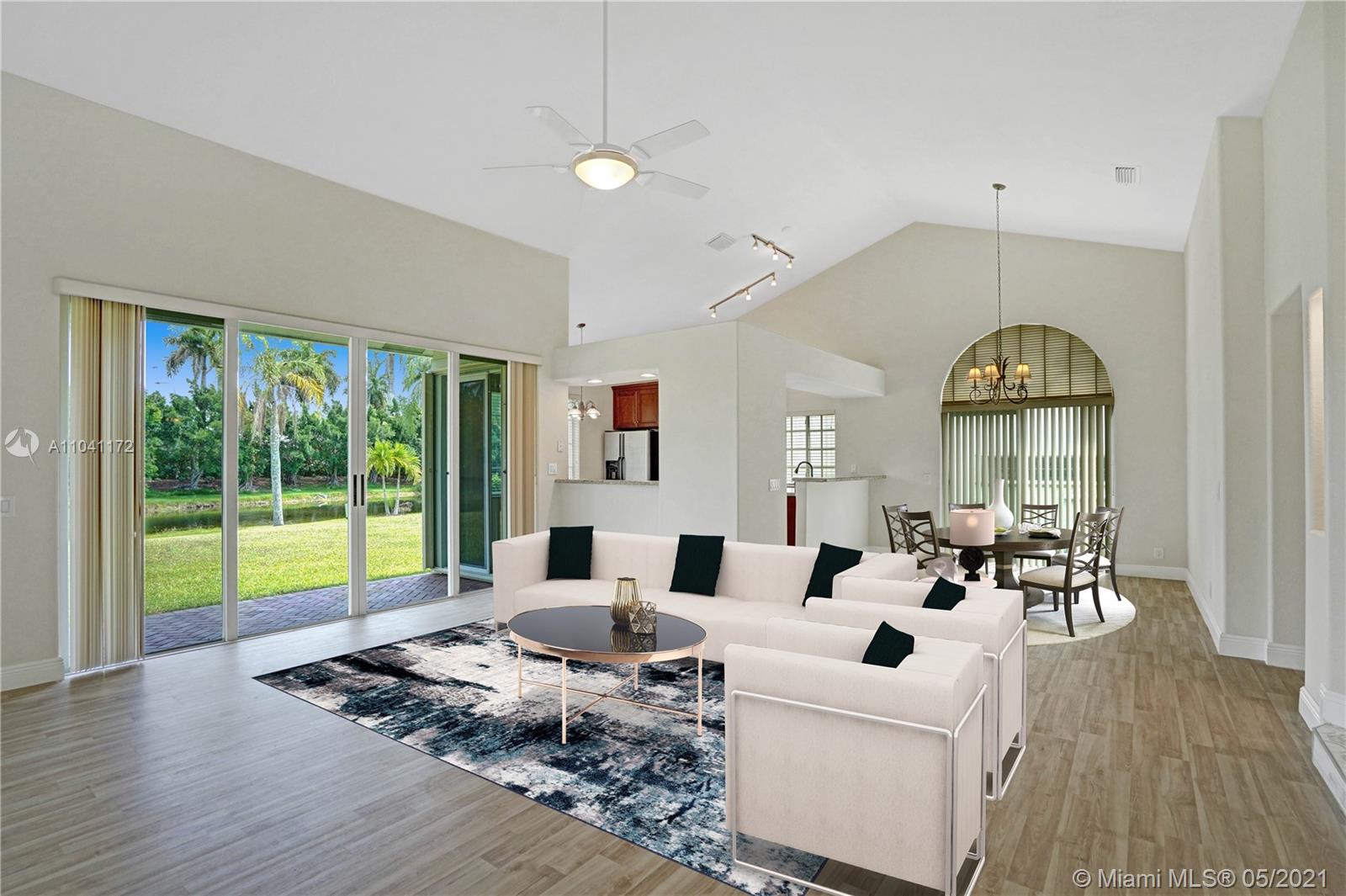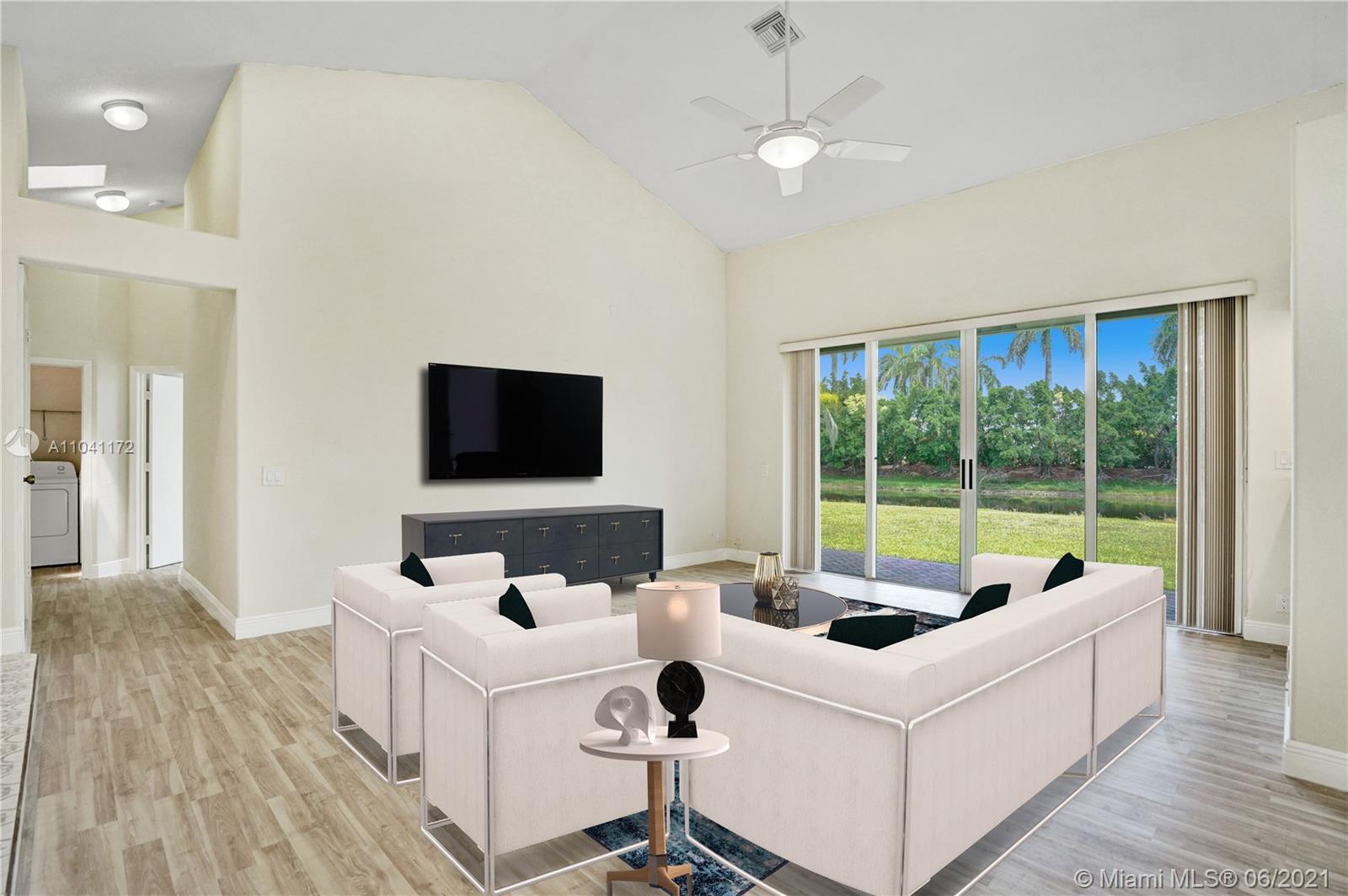 **OPEN HOUSE CANCELLED** Fabulous opportunity @ HIGHLY SOUGHT "LAGUNA SPRINGS 2" 1 level Waterfront home sitting on OVERSIZED LOT, featuring unique architectural details. Expansive living areas with volume ceilings and so much light! Enjoy calming views of WATERFRONT & GREENERY, true South Florida indoor/outdoor lifestyle. Large patio with brick pavers overlooking a peaceful setting. New roof & accordion shutters, new breaker panel, new flooring & baseboards, new A/C unit, new paint inside & out. Located in a small, quaint & centrally located enclave with resort style community pool. WALKING DISTANCE to Indian Trace Elementary, Tequesta Trace Park facilities, Middle school, shopping & houses of worship. **Select images have been virtually staged**