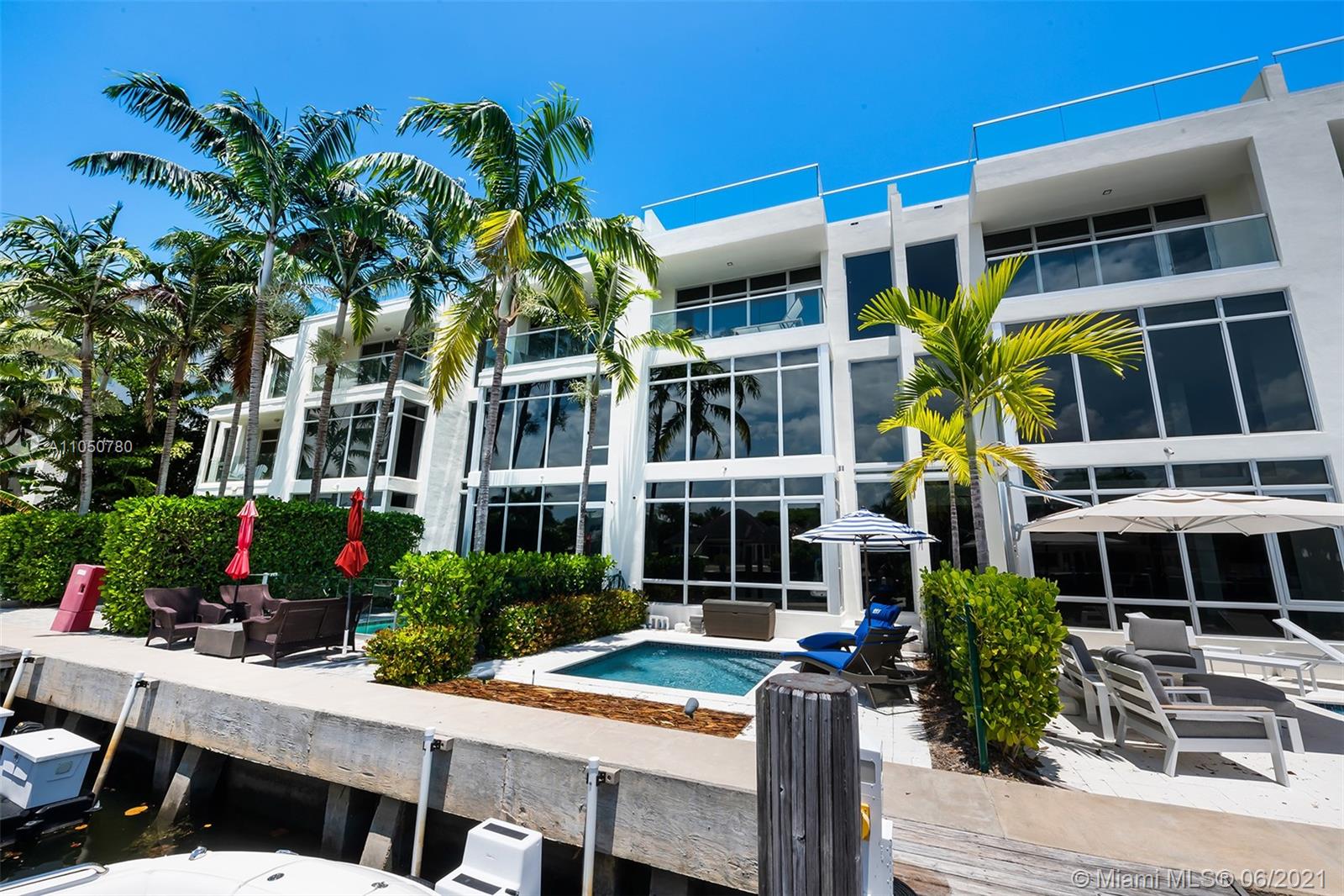 Gorgeous in every way! Waterfront 3 story contemporary townhome, 10x12' private pool & dock slip for a vessel up to 45 feet w/ direct ocean access. Simply stunning with great designer finishes plus dramatic soaring ceilings. Private roof top terrace with views of the waterway & city skyline. Modern design provides open living space with large island for entertaining. Second floor offers a large loft area which can be used as a media room, game room or second living space. Three en suite bedrooms/baths with complimenting finishes. Interior elevator, 2 car garage, electric window shades, porcelain floors, security pads, surround sound & Miele appliances make this striking home the best on the market. Located in prestigious Las Olas Isles. Walking distance to the beach & famous Las Olas Blvd