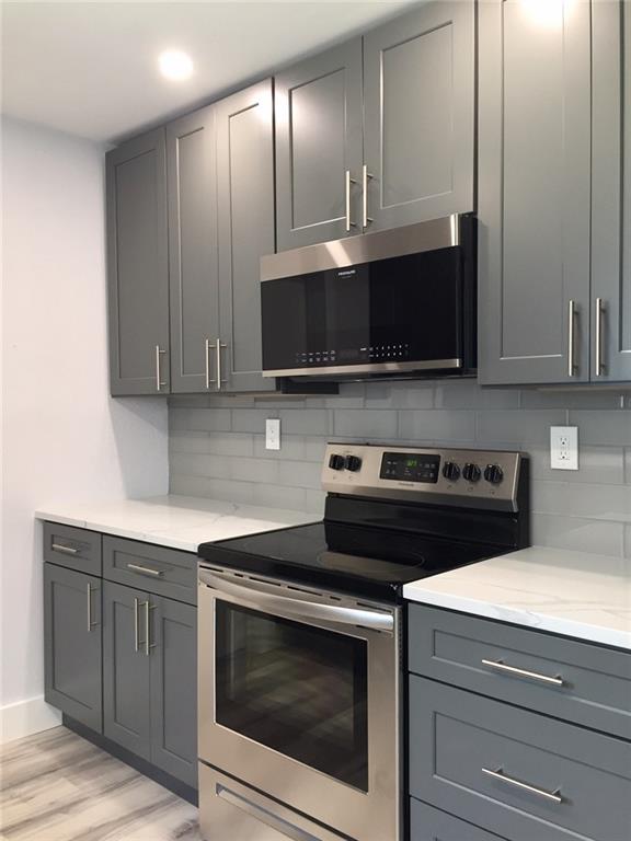 Gorgeous absolutely turnkey updated and substantially remodeled home! Large expansive bright open space defines the family, dining and living room that invites contemporary living. This living area measures 44ft4" X 14ft9". New Hurricane impact windows and doors. Updated permitted electric panel. Roof 4 years new. All new kitchen cabinets with stunning quartz countertops and new SS appliances. New flooring and new interior trim throughout home. New water heater. 3 year new AC. New lighted ceiling fans in all bedrooms and living room area. Bathrooms are completely designer updated. Lots of closet space. Fenced-in yard with new sod. Large lot with room for a pool!! Separate large laundry room. Established mature tree lined neighborhood. The details in this home will impress everyone's taste!