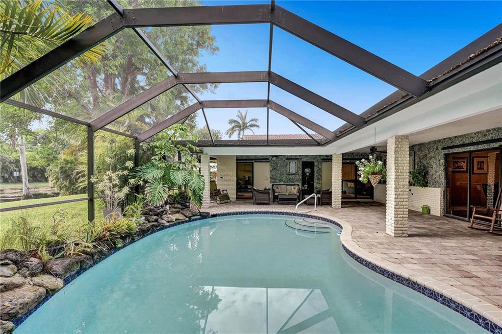 Fantastic opportunity to own a well maintained home in no HOA Plantation Golf Estates.Plenty of room for your family in this beautifully updated 3 bedroom split plan home with 2 master suites, each with en-suite cabana bathrooms that open to the pool. Oversized 3rd bedroom and 3rd cabana bathroom. Large custom closets. Hard wood floors in living/dining great room. Updated kitchen with granite open to family room. Crown molding and custom baseboards throughout. Enjoy relaxing or entertaining in the backyard oasis with screened in heated pool, covered patio, and 1/3+ acre of land on the canal. Kitchen pass-thru window to patio. Outside cable and TV mount ready for your TV. Wood privacy fence surrounds sides and back of property. Pool resurfaced 2020. New Samsung range. Impact windows/doors.