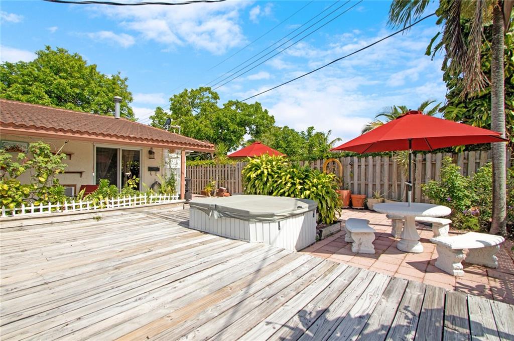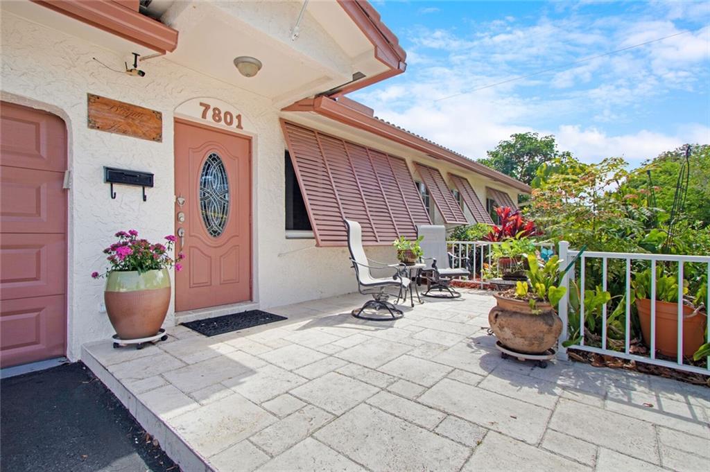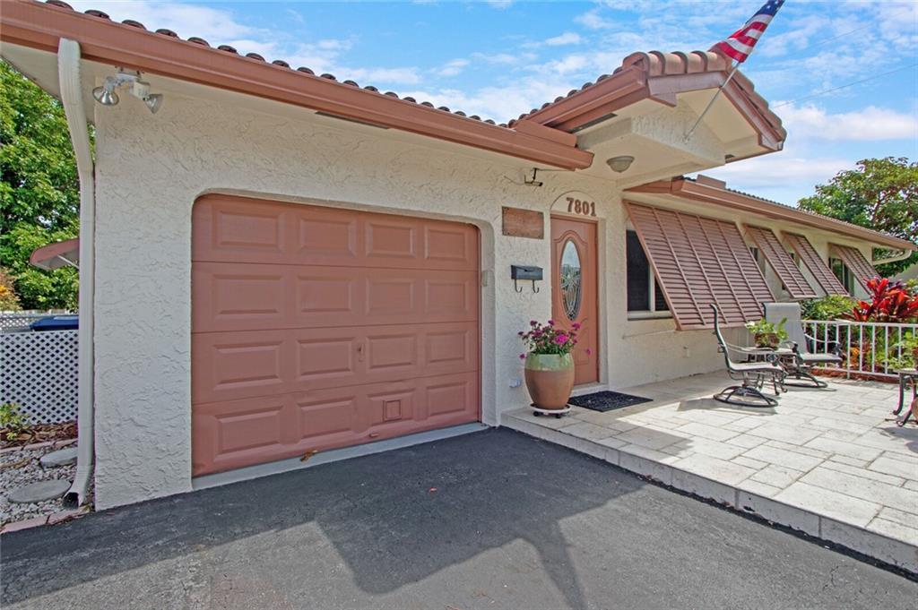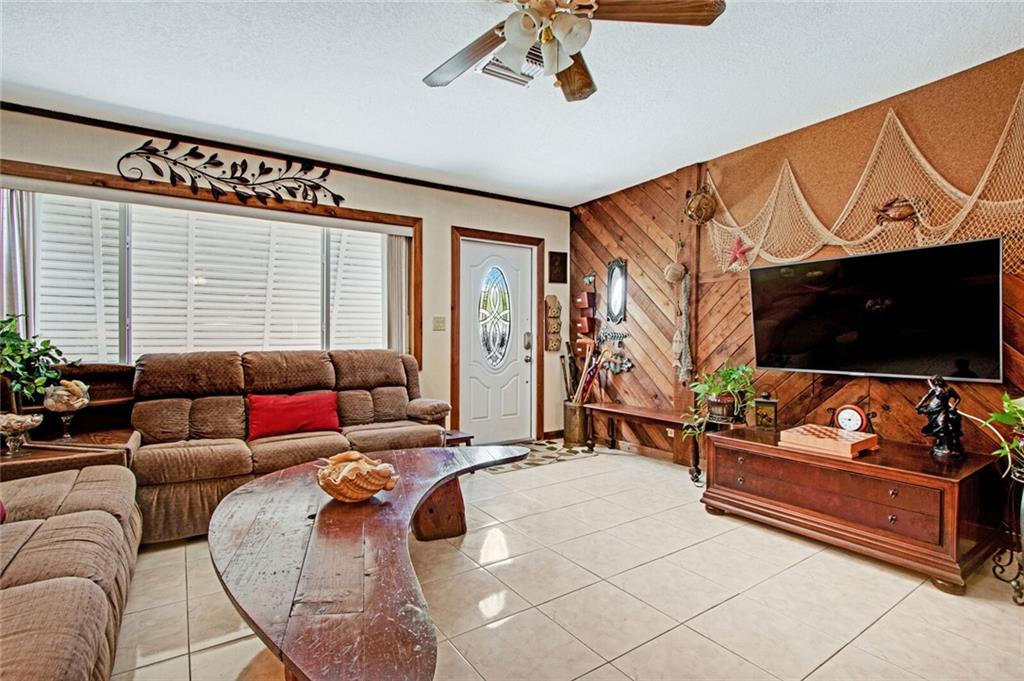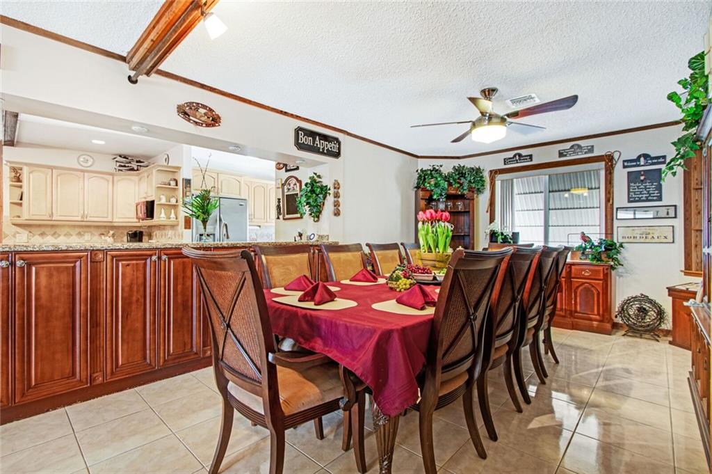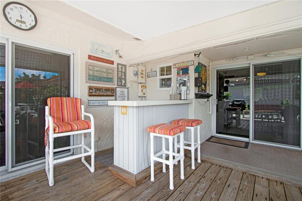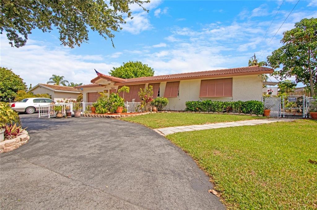 Large 4/3.5 home perfect for entertaining with tons of living space- large living room, family room w/bar & dining room. Updated kitchen has breakfast bar, granite counters, wood cabinetry, stainless steel appliances with tons of storage and counter space. Washer & dryer off kitchen. Split bedroom plan. Impact windows, new roof in 2007, one car garage and large circular driveway w/landscaping & sidewalk. Sit on the front patio and wave to neighbors or relax in your low maintenance backyard under the covered patio with outdoor bar. Large storage unit attached to rear of home. Largest bedroom has half bath inside- can easily be converted to a great master bedrooms space. Another large bedroom has a fireplace. 3 of 4 bedrooms have full glass doors leading to outdoors. No flood zone- "X".