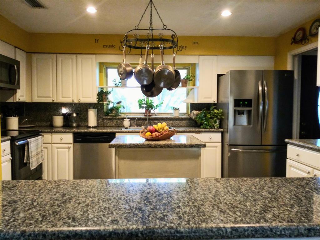 This rare 3 bedroom 2 bath Plus A formal Dining room which could easily be 4th bedroom or Den. Tastefully remodeled kitchen with Granite, stainless steel Appliances and a Pass Through window giving you that open feel. Split floor plan, Vaulted ceilings with sky lights, Roof Approx 3 years old, A/c only 4 years, all of this Is Located on One of the few Spring fed lakes left. New Dock Just rebuilt .Concrete grilling area, Lushly Landscaped with many exotic plants and shrubbery.The property extends across the lake.