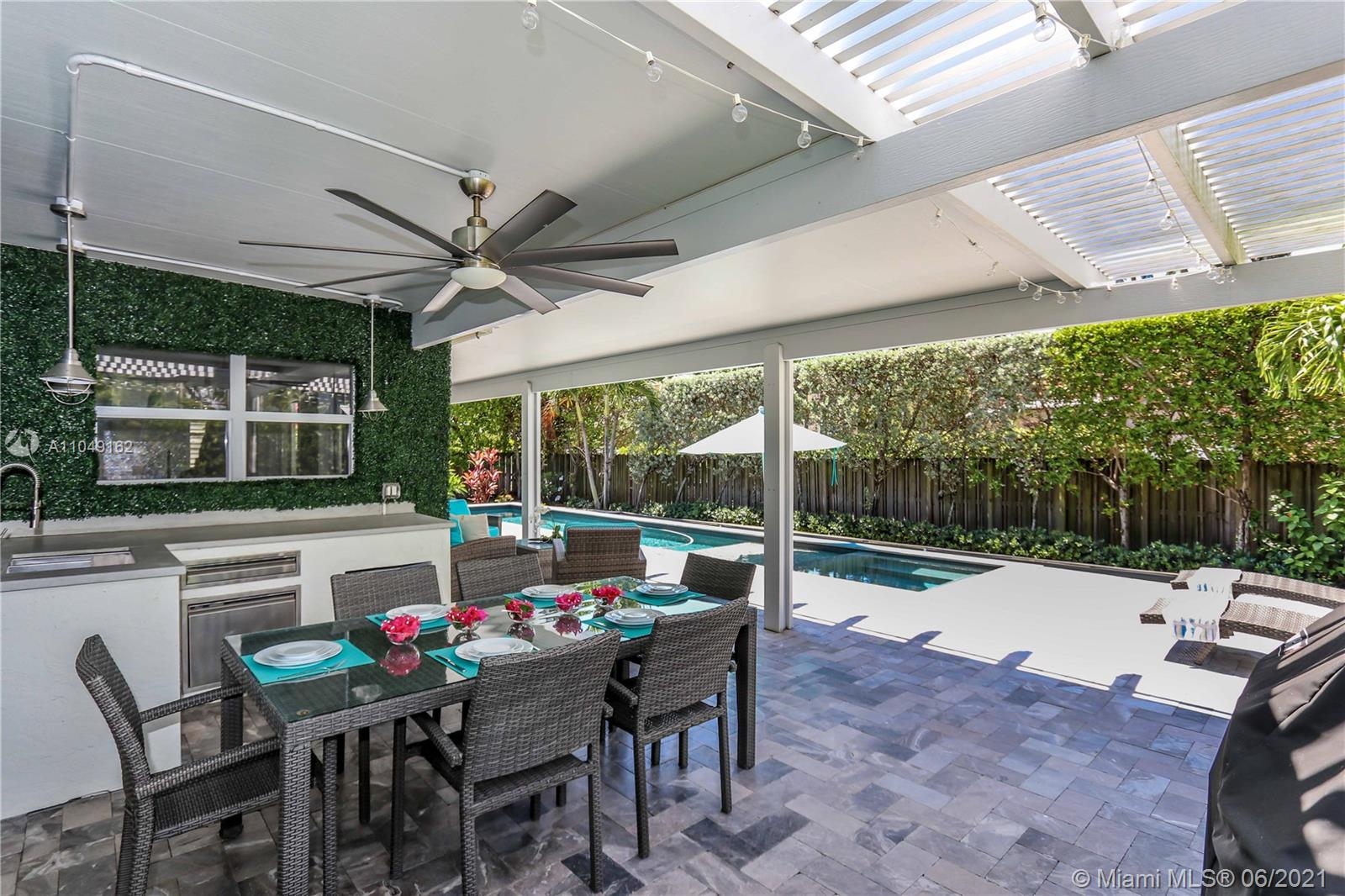Remodeled Home in the hearth of Hollywood Lakes! Open concept kitchen features lots of cabinets space, big cooking Island with farmer's sink and breakfast area, stainless steel appliances, gas stove, custom made eating area and a beautiful view of the pool through double doors. Vaulted ceilings, exposed wood beams and fire place. Master bedroom features an open space together with Master bath with double sink, lots of storage cabinets, spacious shower with frameless glass door. Double doors connecting Master bedroom with pool area. Impact widows and doors throughout! Beautiful salt water Lap Pool, Spa and outside shower. Cover Patio Features dining and seating area with outside kitchen to enjoy the outdoors living! Fenced front yard and Lighted back yard. Custom window treatment included!