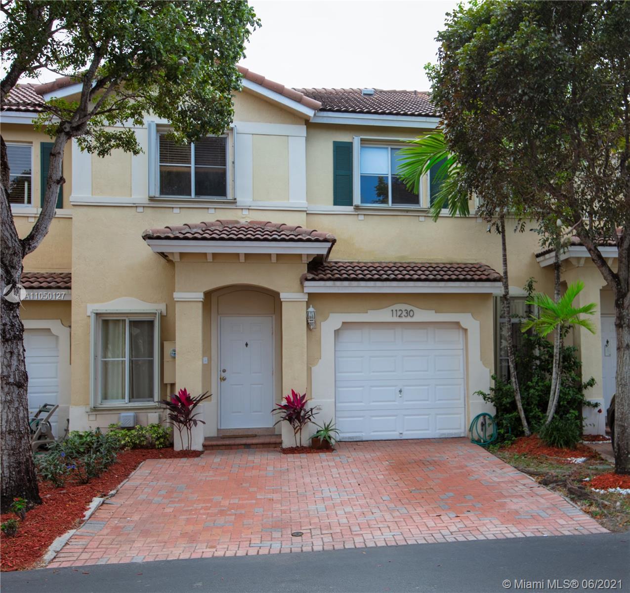 Spectacular 2 story Townhouse 4 Bedrooms, 3.5 Bathrooms located in gated community Sonoma at Doral. Extremely well maintained, Property features one car garage, 2 car driveway, family room, big bedrooms, open kitchen with quartz stone counters leading to the family room, tile floors first level and laminated vinyl floors upstairs . Spacious Roofed backyard with brick paver flooring with no lawn maintenance, for all type of activities. Close to A+ Schools, main streets, highways, malls, supermarkets, restaurants, parks, entertainment and more. Low cost monthly Association payment is $ 160.00