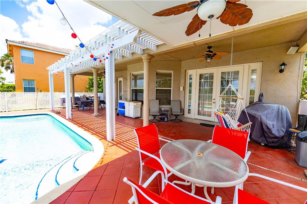 Another Nice Property Just Listed in Miramar! Entertainment and location what a perfect combination! A HUGE driveway that accommodates up to 8 vehicles and 2 car garage makes this 5 bedroom and 3 bathrooms home the perfect place for a big family. The house location is perfect to enjoy the sunset by the inviting swimming pool or spa, and with no neighbors in the back, you'll feel like you own your private resort. This magnificent home offers in-law quarters with its own private entrance and exit to the swimming pool with a renovated bathroom that functions as a cabana bath. Upstairs there are 4 bedrooms including a massive master bedroom with an office/sitting area and two sinks separated by a beautiful shower.