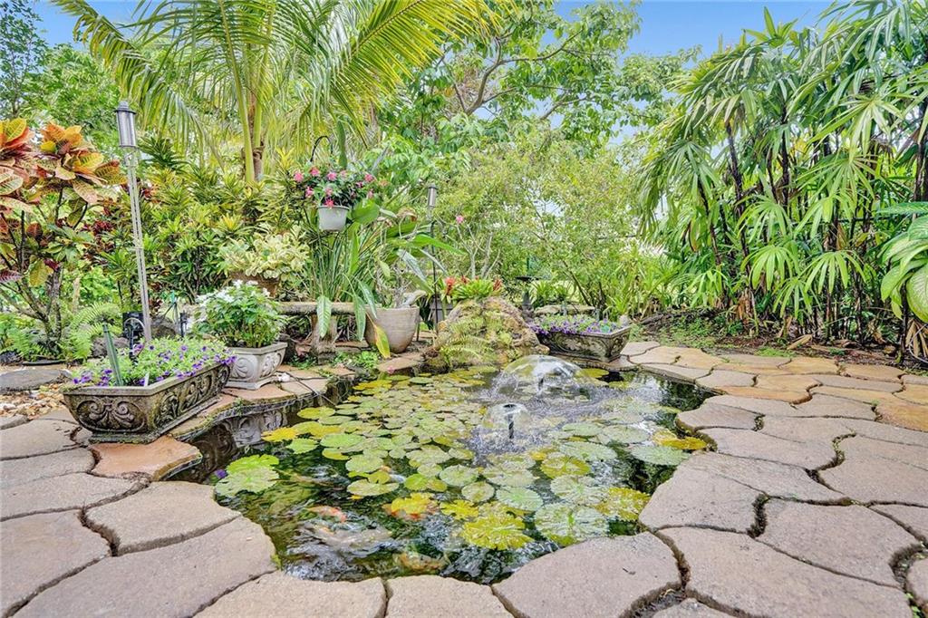 PARADISE FOUND-WOW! Gorgeous, move-in ready 3/2.5 + a huge open loft (could easily be a 4th bdrm). The downstairs master w/ a sitting area overlooks your own backyard botanical garden featuring a covered & open lanai, a magnificent private fenced garden w/ blooming flowers everywhere, an arched trellis that's like a picture window to a romantic, bubbling pond w/colorful goldfish! OMG! Inside, the zen-like master bath w/jacuzzi tub, a big shower & double sinks & XL custom cedar closets to organize your wardrobe. Beautiful custom kitchen, glass tile backsplash, granite & stainless appls all overlooking the family rm! Entertain in style w/a formal dining rm + a formal living rm w/dramatic 2 story ceilings! 2 large bdrms up, a modern bath + the loft! Walk to comm pool/tennis Top Schools-Hurry!